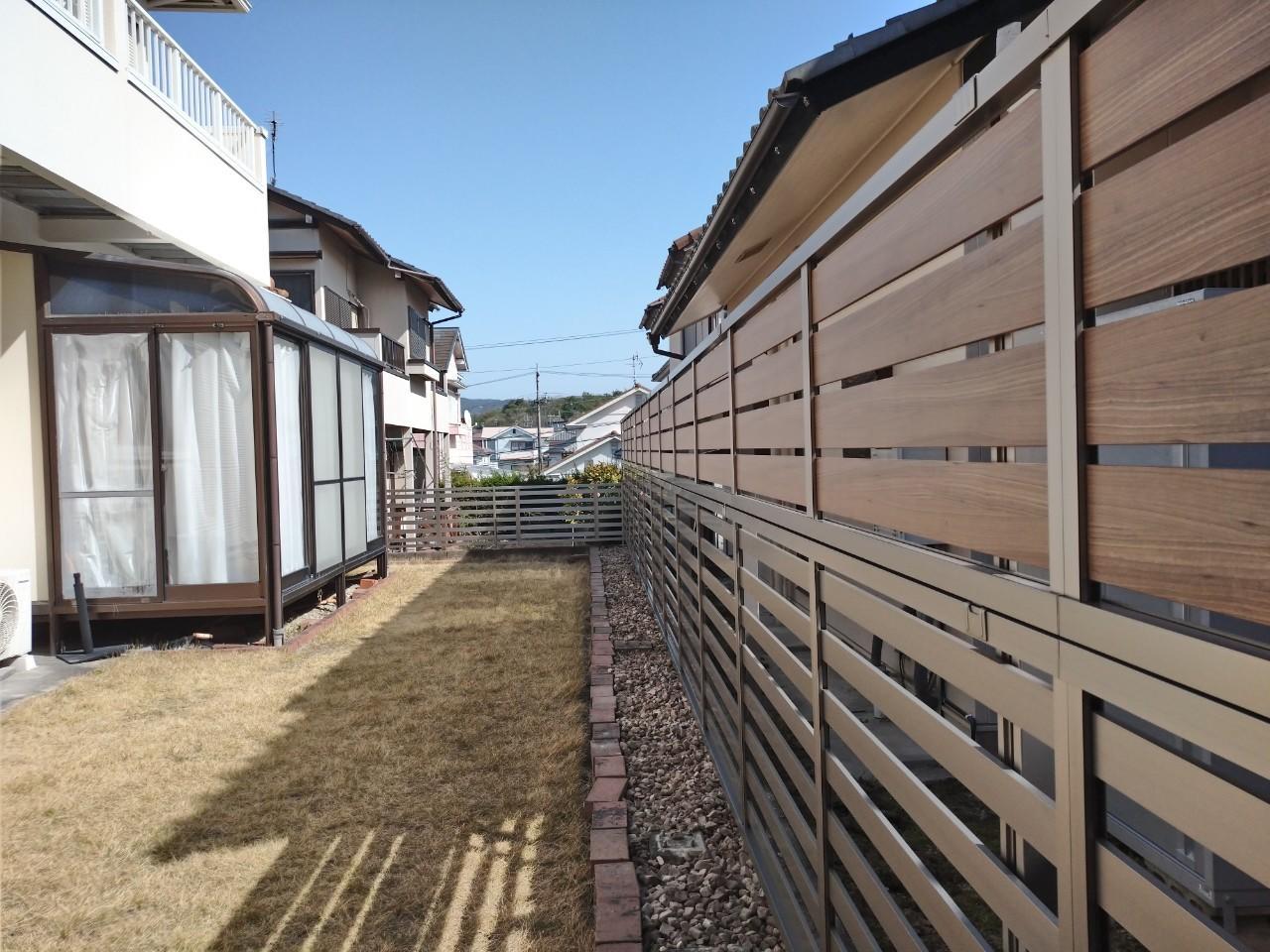 フェンスの2段目は木目調にしてとてもおしゃれになりました。