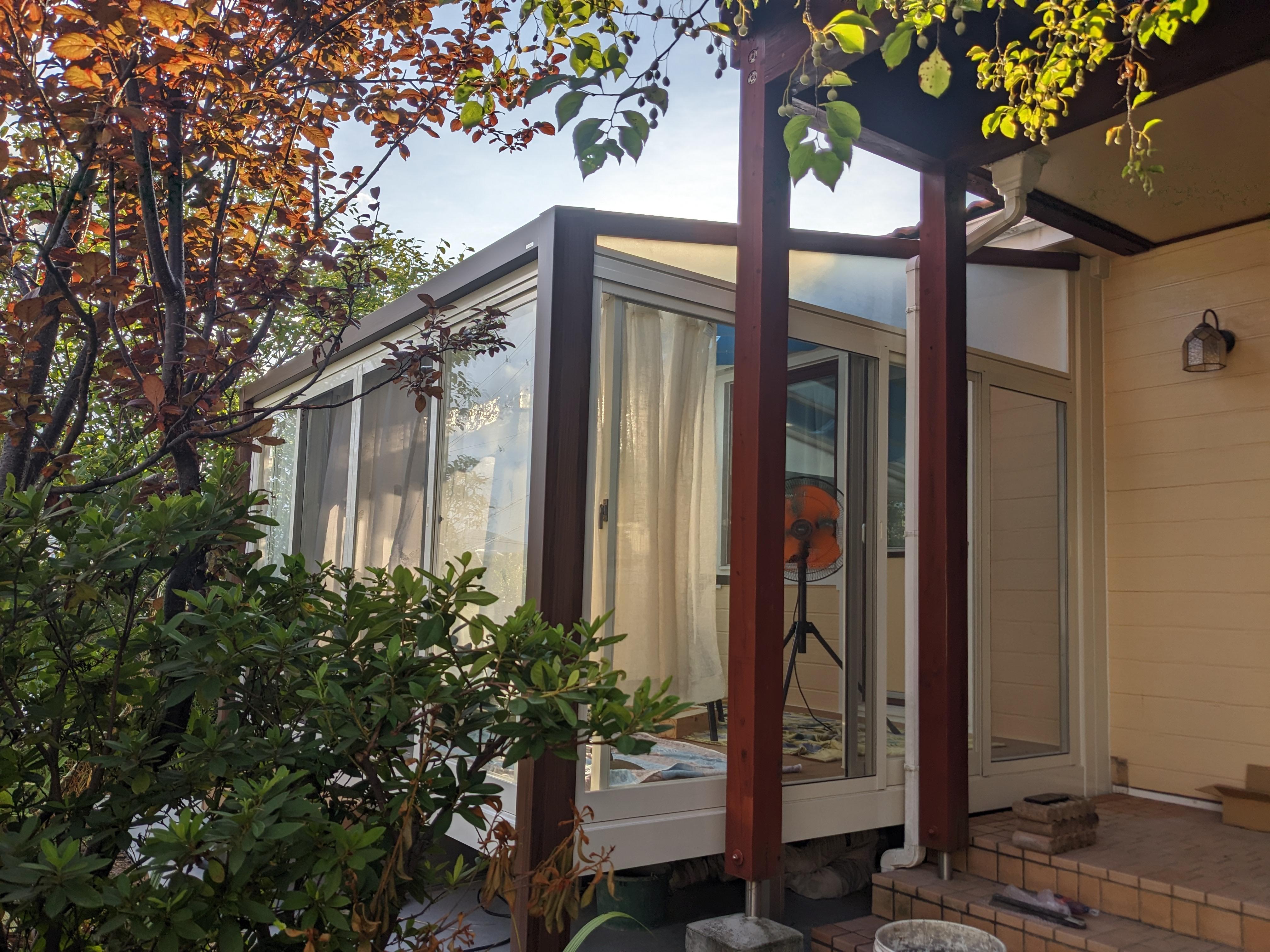 お庭にガーデンルームGFを設置しました! お部屋の延長上として、 雨を気にせず洗濯物が干せたり、 趣味の空間に出来たりと、 それぞれの暮らしに合わせた使い方ができるガーデンルーム! お客様のお庭が自然豊かとても素敵で、 GFもお庭にマッチしてより素敵な空間になりました!