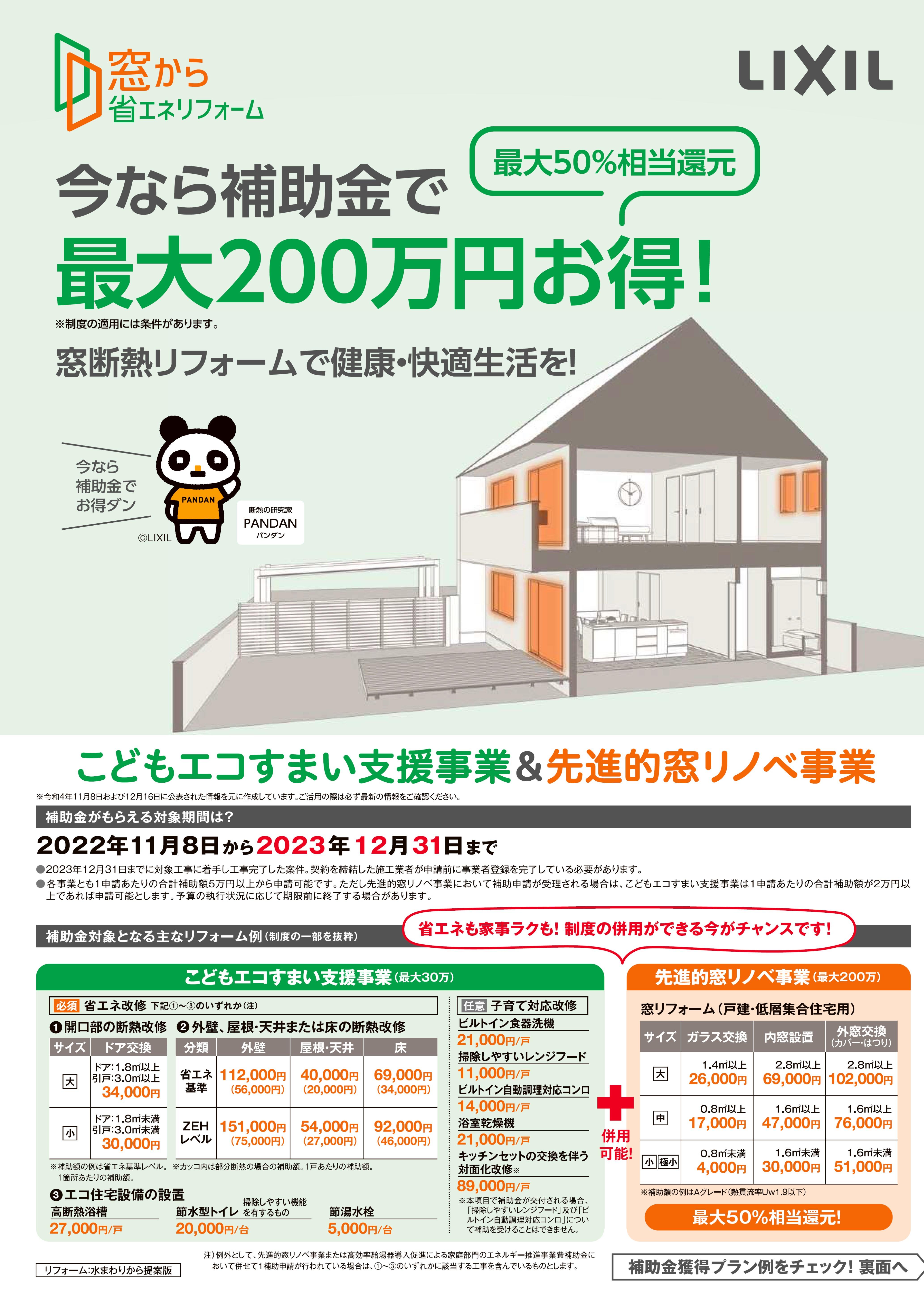補助金制度をうまく活用してお部屋の断熱性能あげましょう!