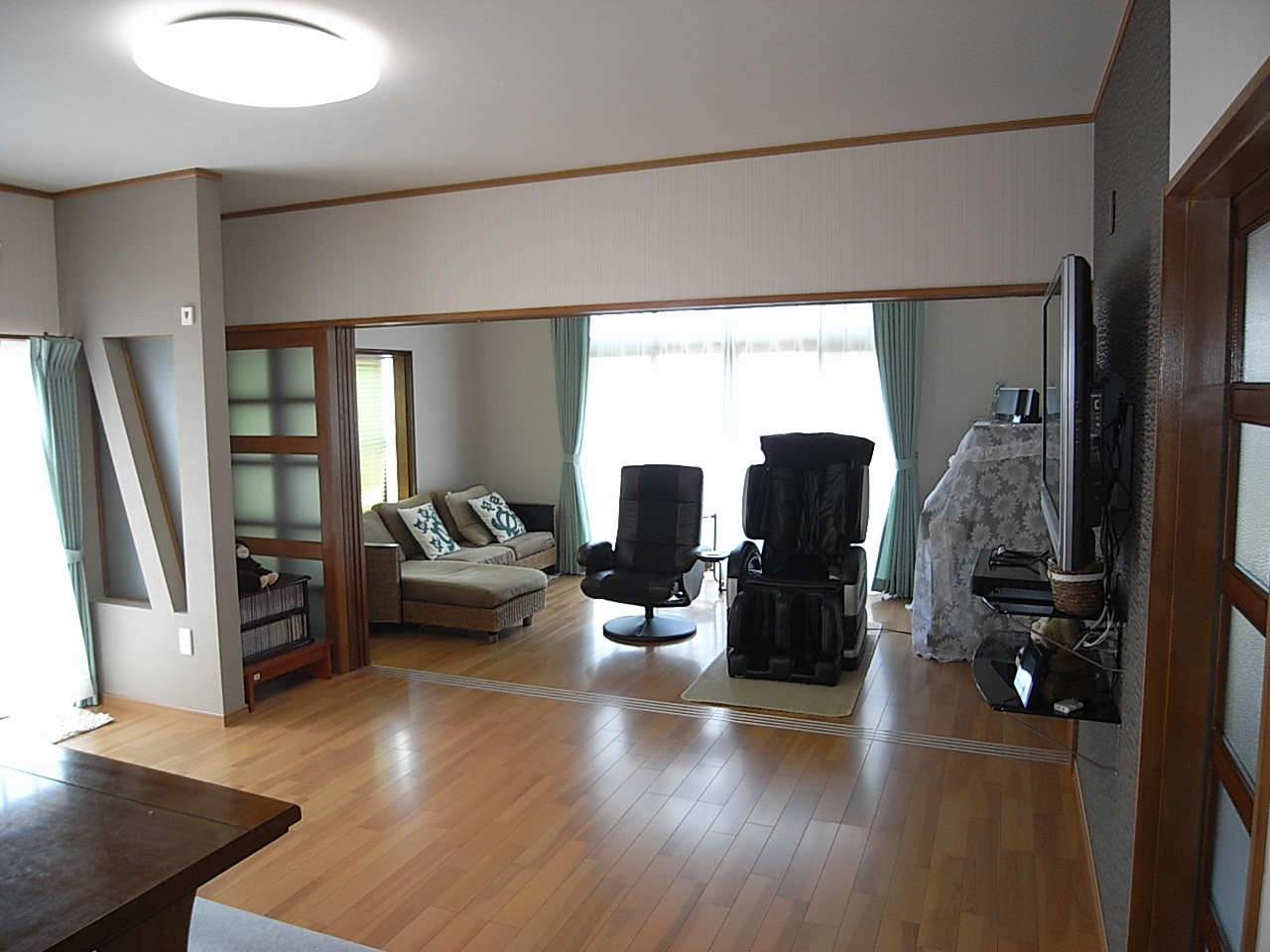 引き込みの間仕切り建具を開放すれば広々としたLDK
