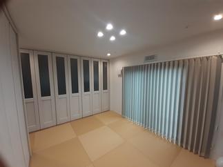 2度目のリフォーム工事をさせて頂きました。 LDKに隣り合った和室の 壁を 取って 可動の間仕切り建具を設置。 床の段差を無くし ヘリ無し畳で仕上げました。 和風の押し入れも 天井までのクローゼットに変更して すっきり。