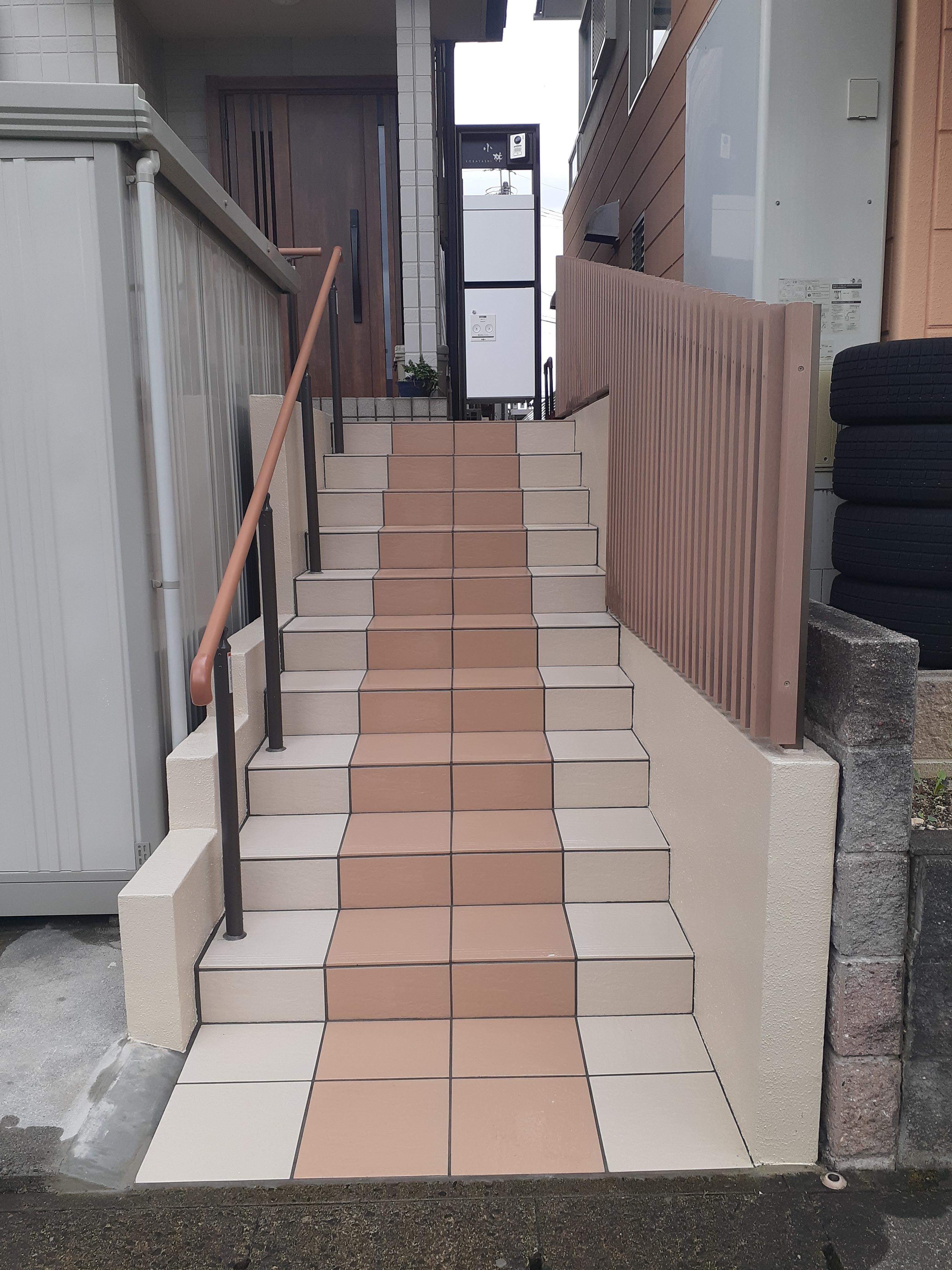 古くなったコンクリートの階段を リフレッシュ。 タイルを貼って 明るいイメージに。
