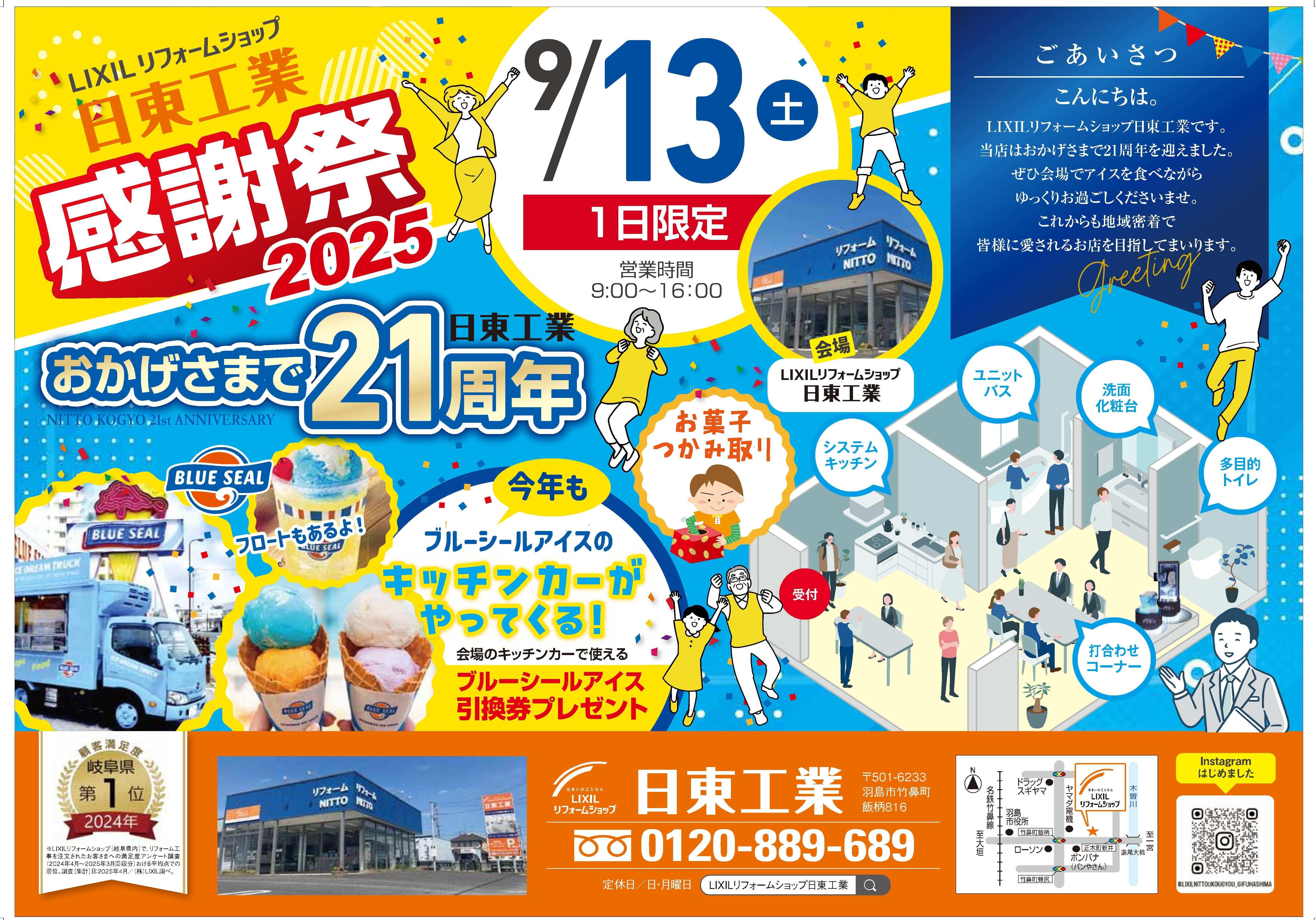 LIXILリフォームショップ日東工業は、多くのお客様に支えられ、おかげさまで21周年を迎えました。