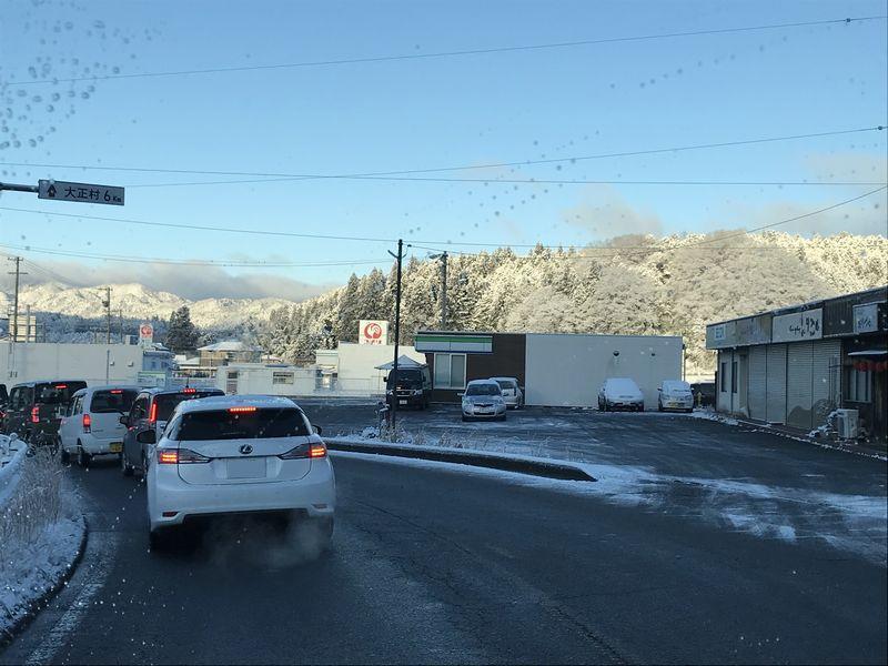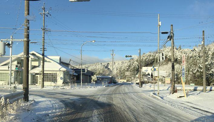 久しぶりの雪道運転。真っ白でした。