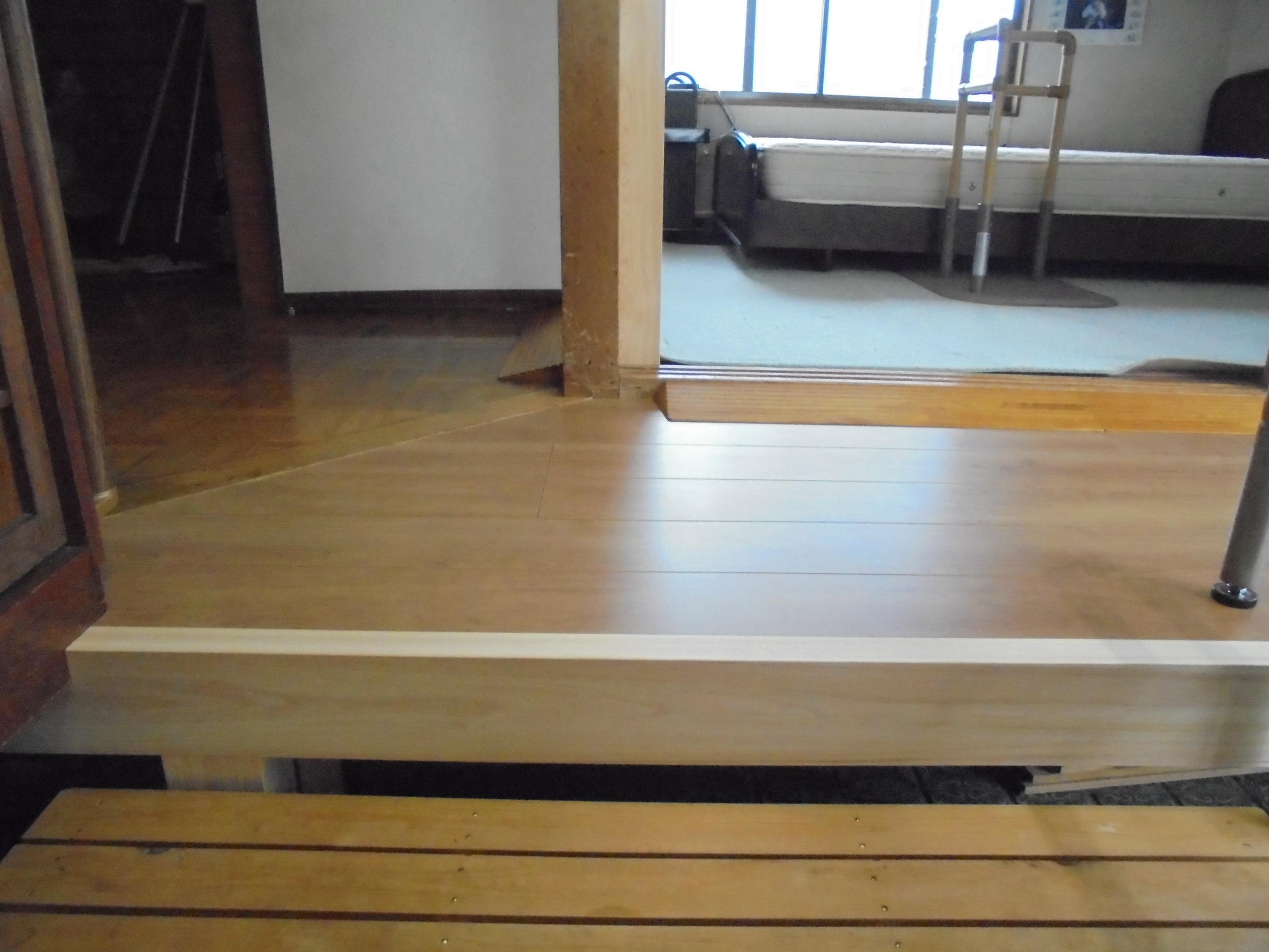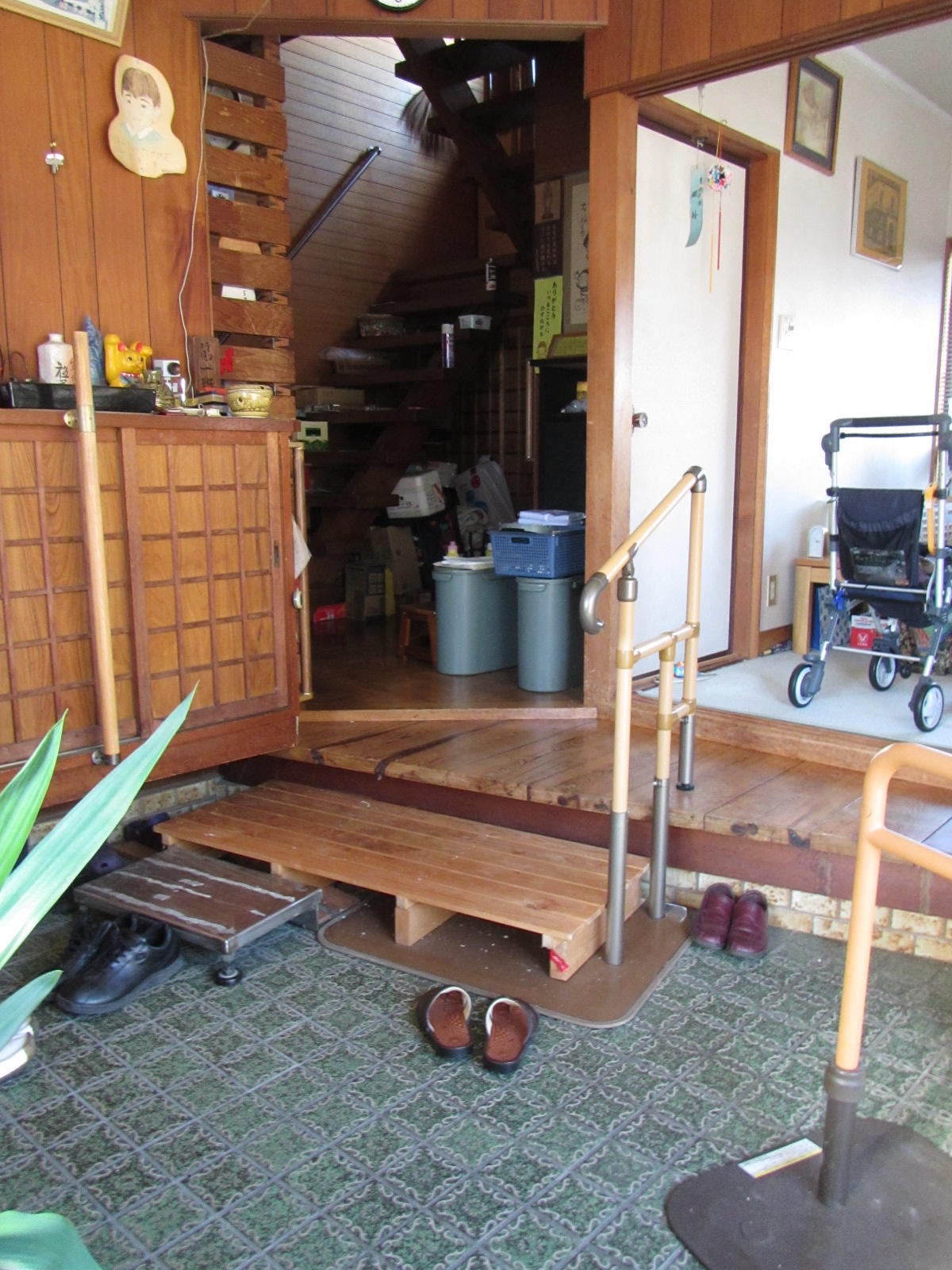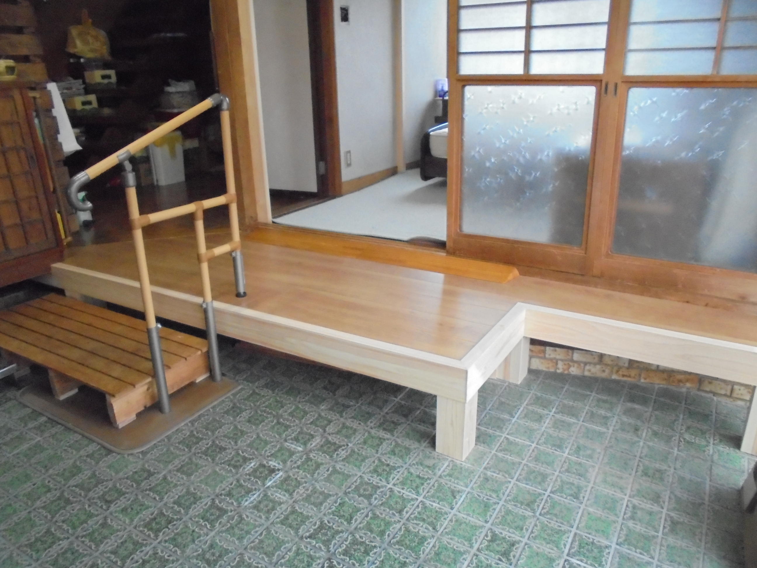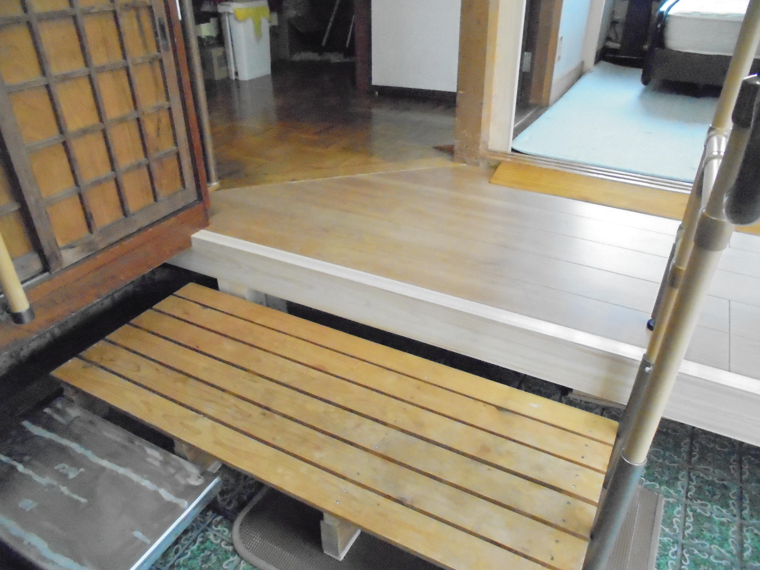 もともとあった踏み台と手すりを設置し以前よりは段差を少なくすることができました。