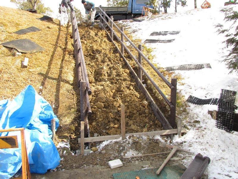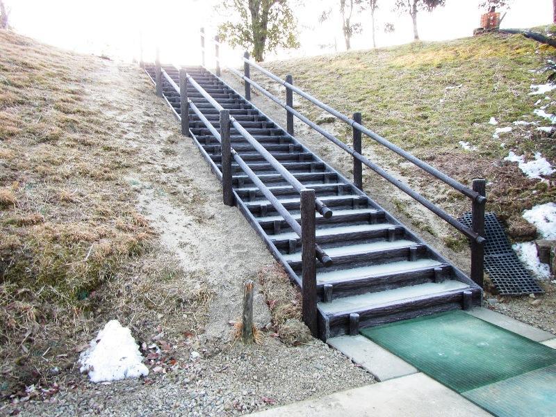 枕木でつくられていた階段が劣化してしまったので、樹脂製の擬木階段で作り直し