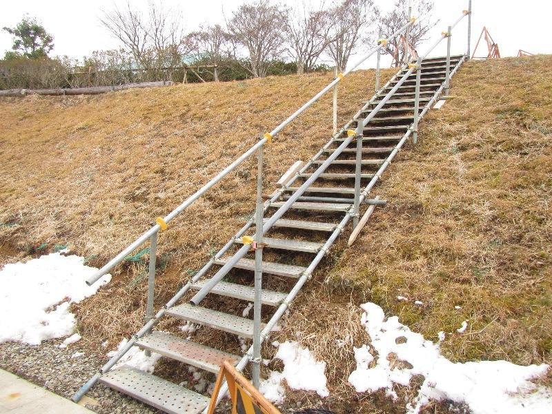 階段は工事するのが難しい箇所の一つです。 今回は高低差もあり、距離も長かったので、図面を作成して工事に臨みました。 冬場の工事でしたが、工事中の養生も行って無事完成できました。 企業様からのご相談も数多く行ってます。 予算や景観など多種多様な要望に対しても頑張ってご提案します。