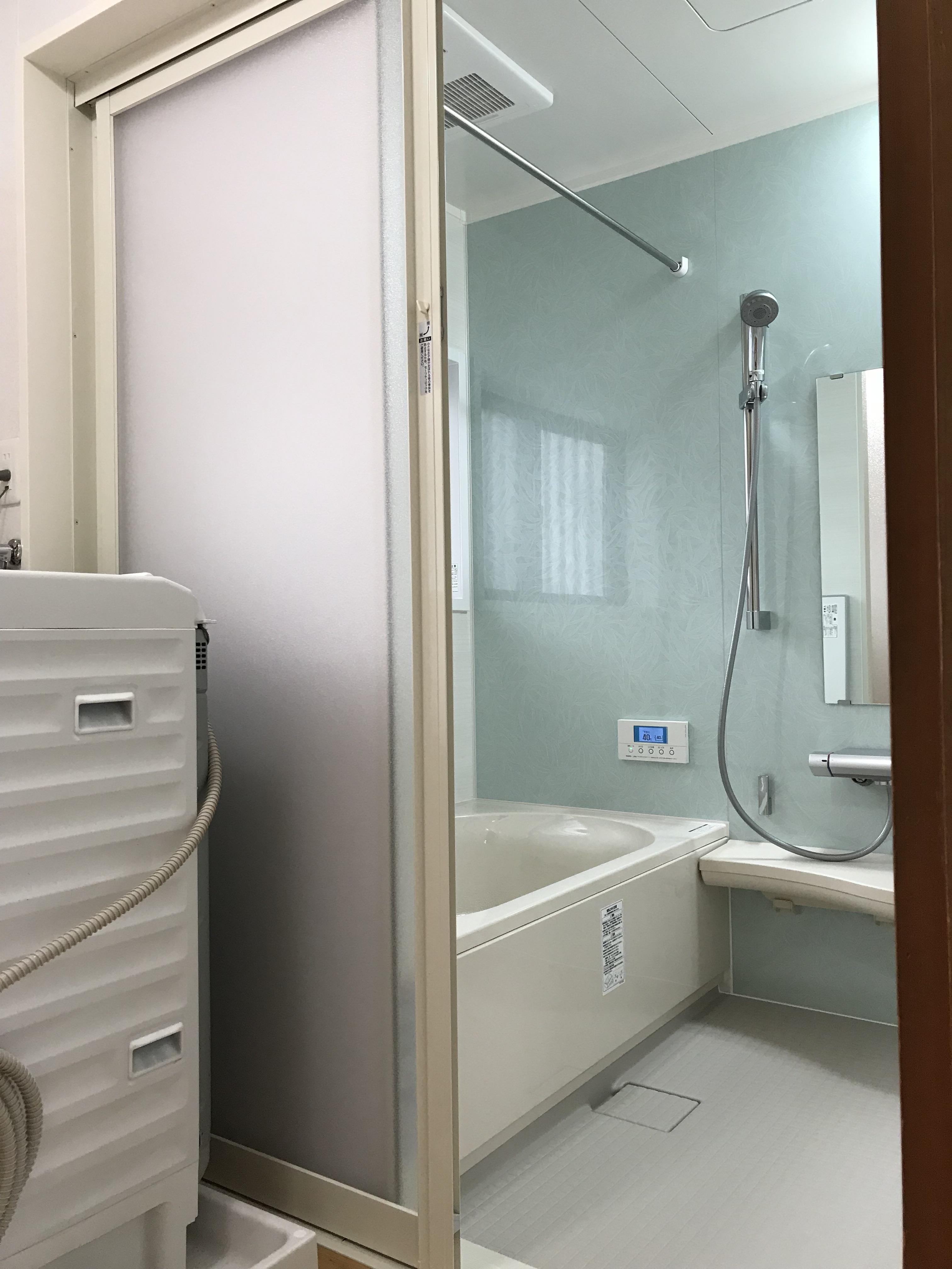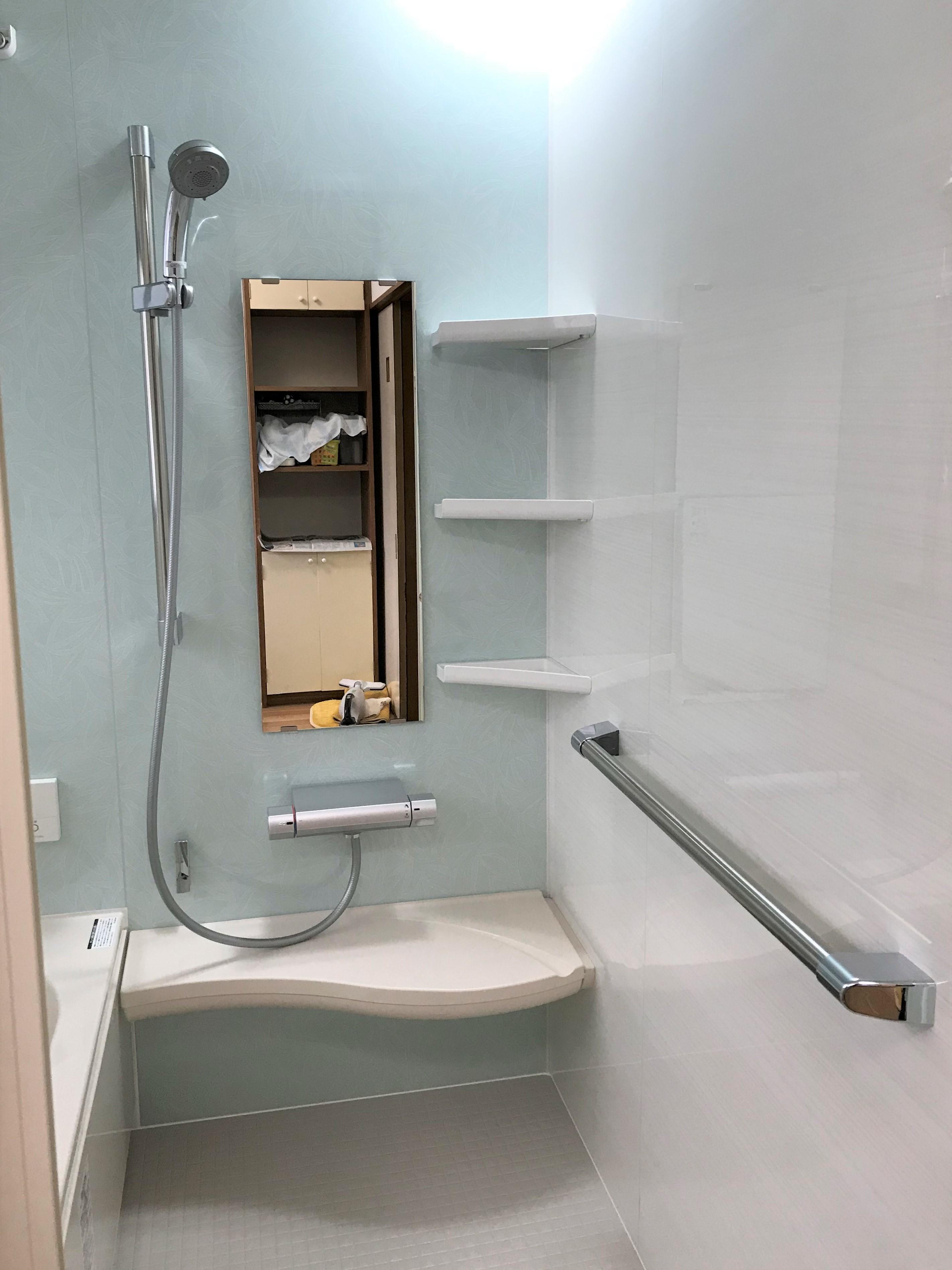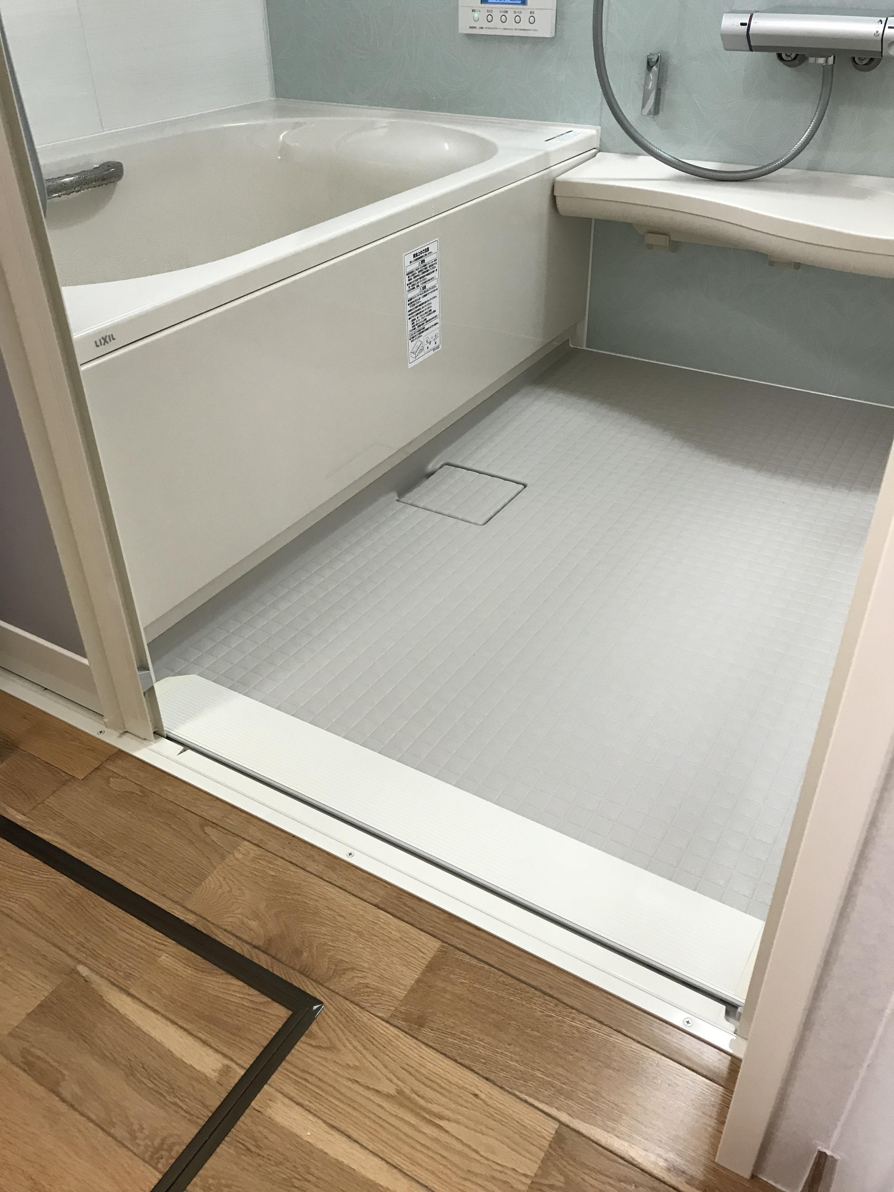 タイルのお風呂、足元が滑りやすく冷たい。冷っとしないキレイサーモフロアへ。段差をなくし、手すりを付け快適なバスルームへ仕上げました。もちろん浴室暖房付きです。