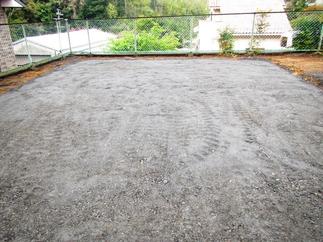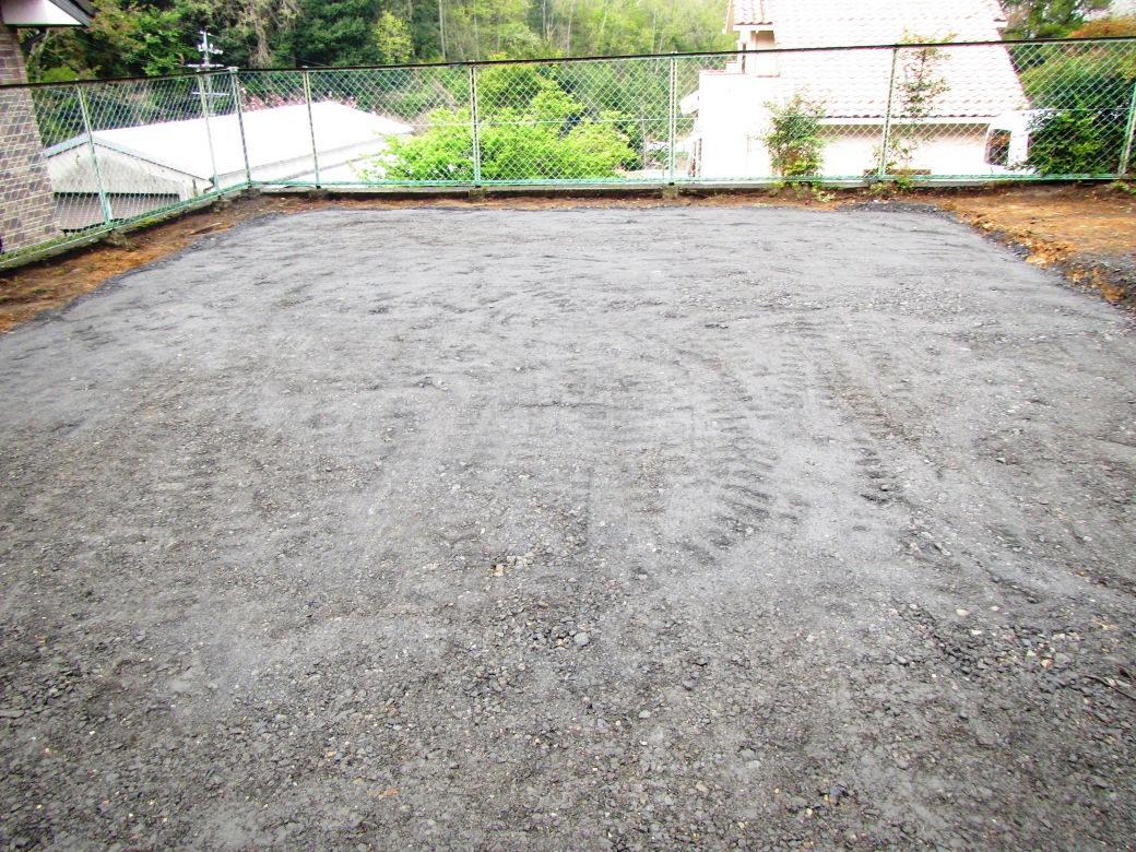 堀り方が完了すると、砕石を敷きこんで路盤を安定させます。