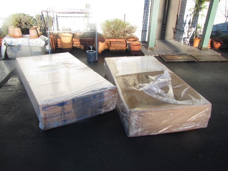 倉庫の材料は大きな梱包で2つに分けて搬入されます。