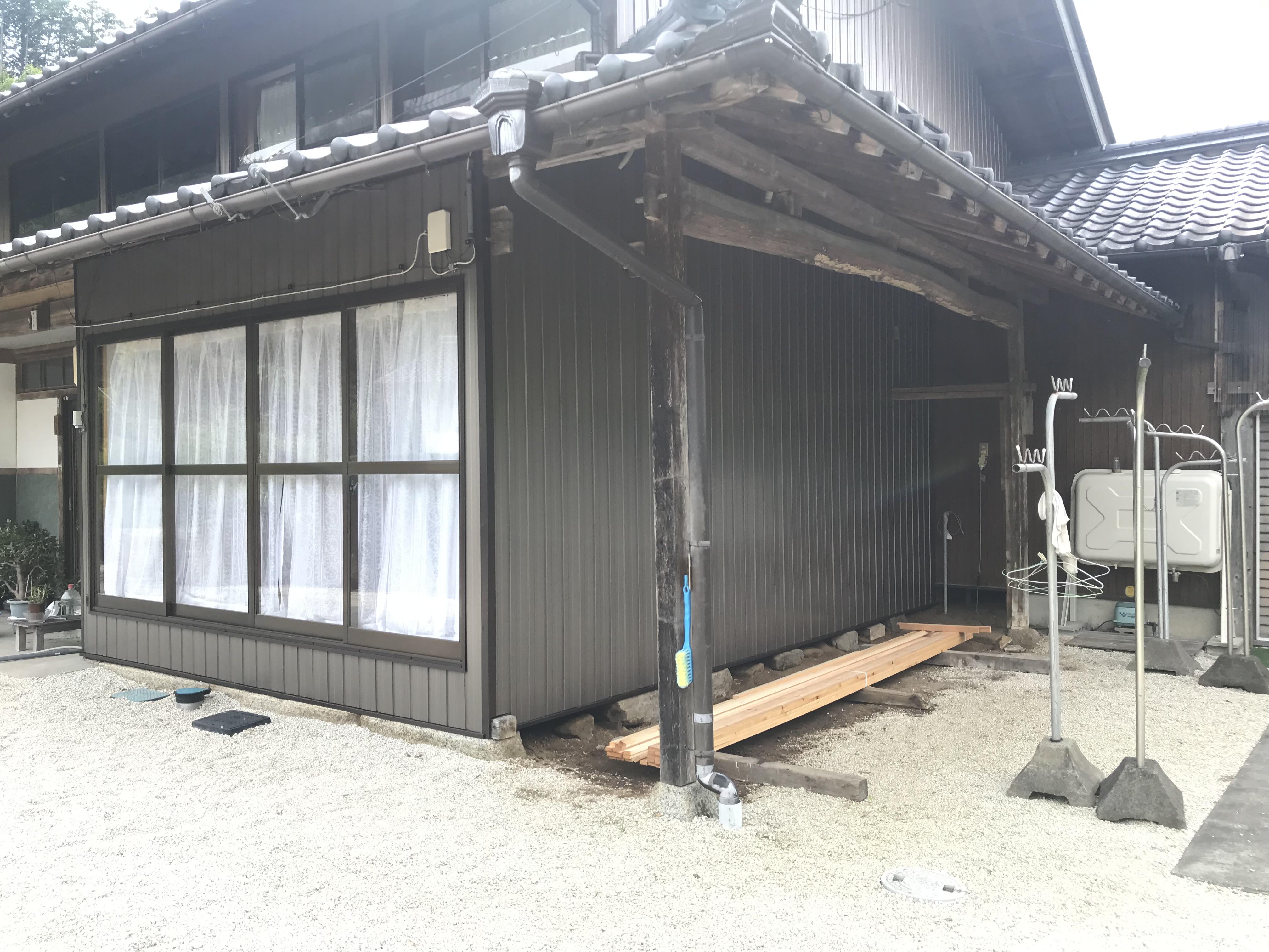 土壁のままだった外壁面を板金で仕上げ雨や風の日でも安心で過ごせるよう施工しました。