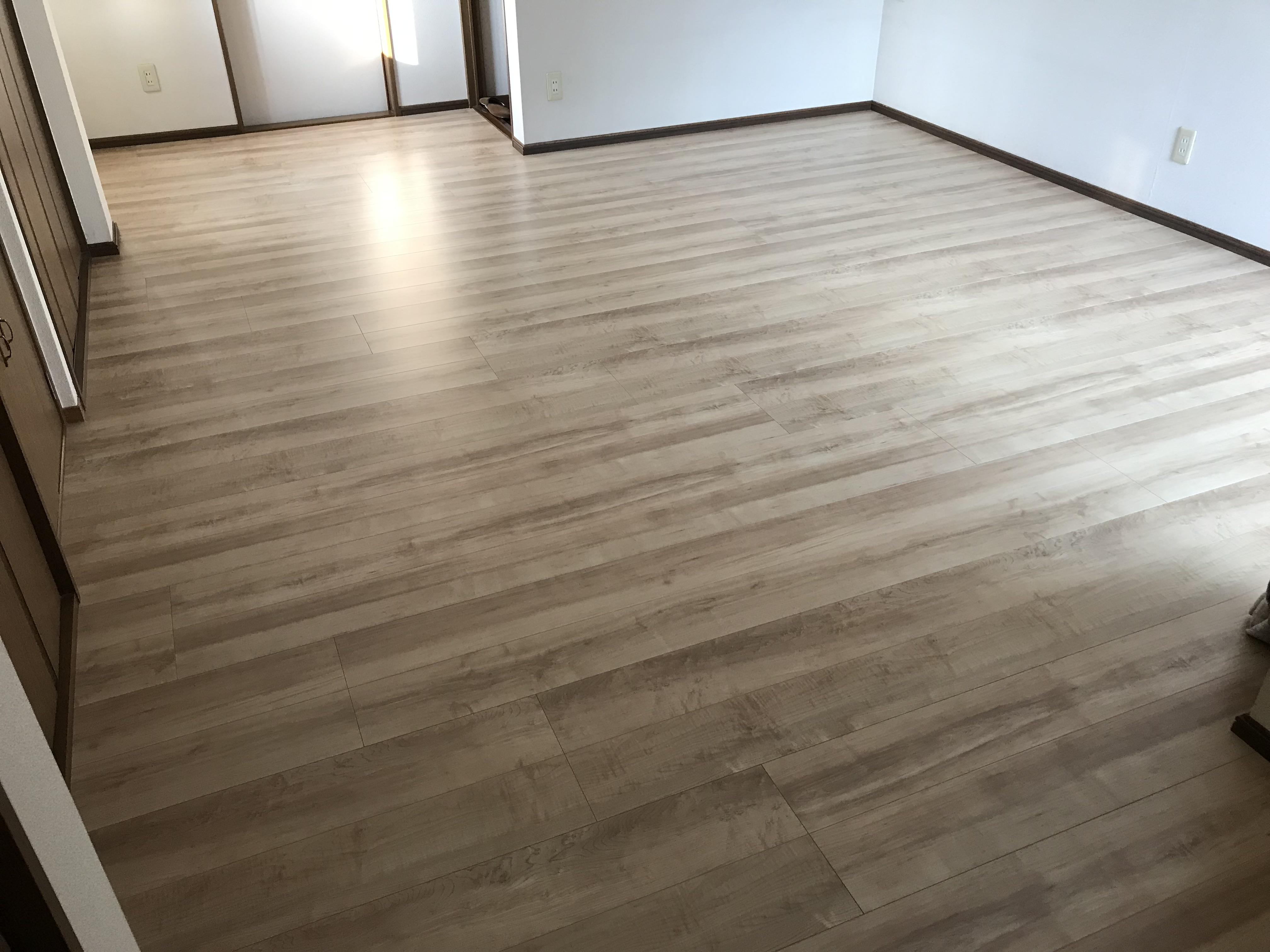 新しい家族(可愛いわんちゃん)をむかえ、じゅうたんだった床をフローリングへ張り替えました。LIXILのラシッサDフロア〈耐水・ペット〉の商品を気に入って頂きました。傷が付きにくく滑りにくい。アンモニアや水にも強いため、ワンちゃんネコちゃんその他の動物と人とが生活するにはとても良い商品です。