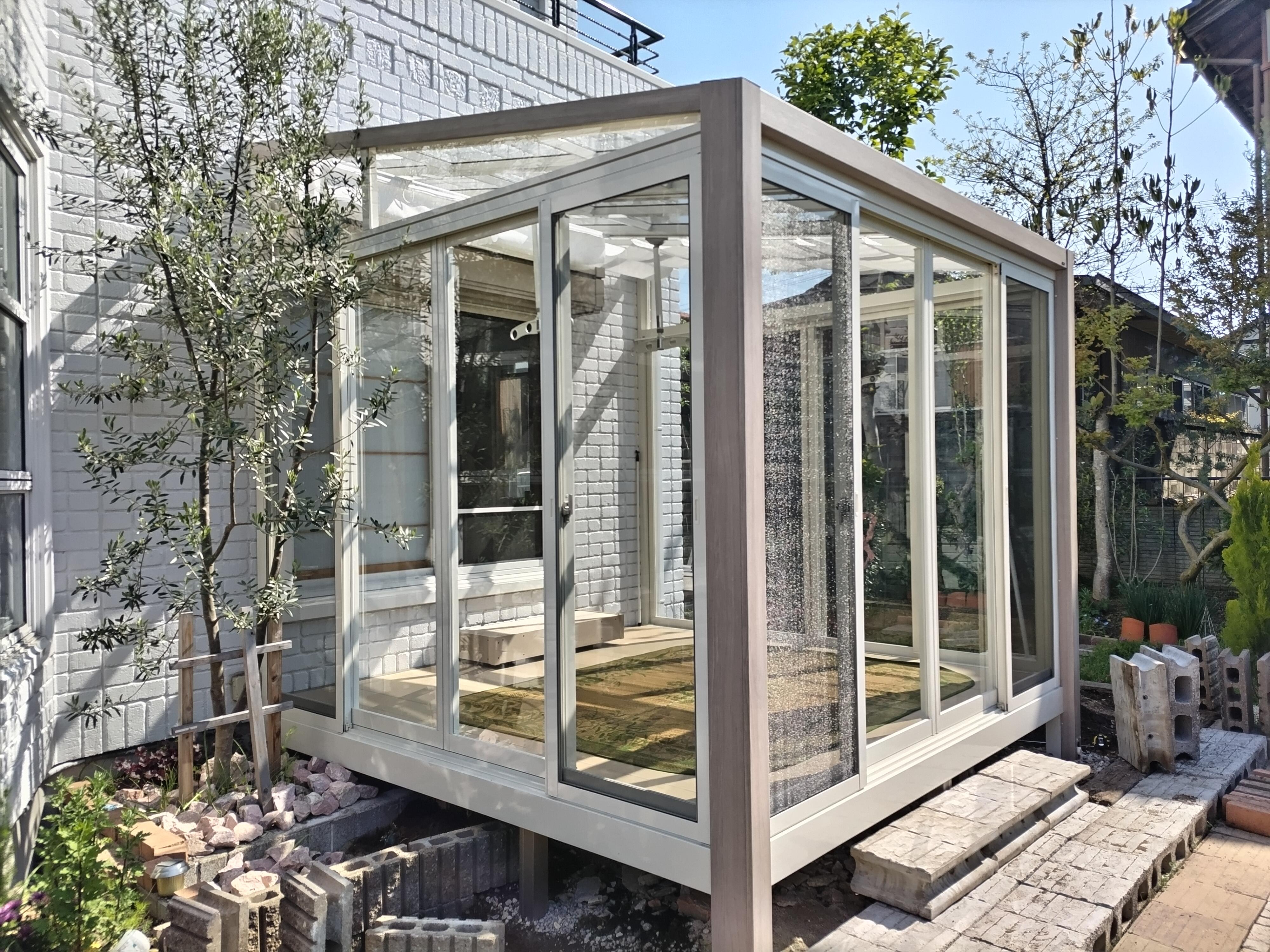 これで急な雨の心配せずお出かけできますし、お天気の良い日はお庭を眺めながらゆっくりお茶など楽しむ事もできますね。