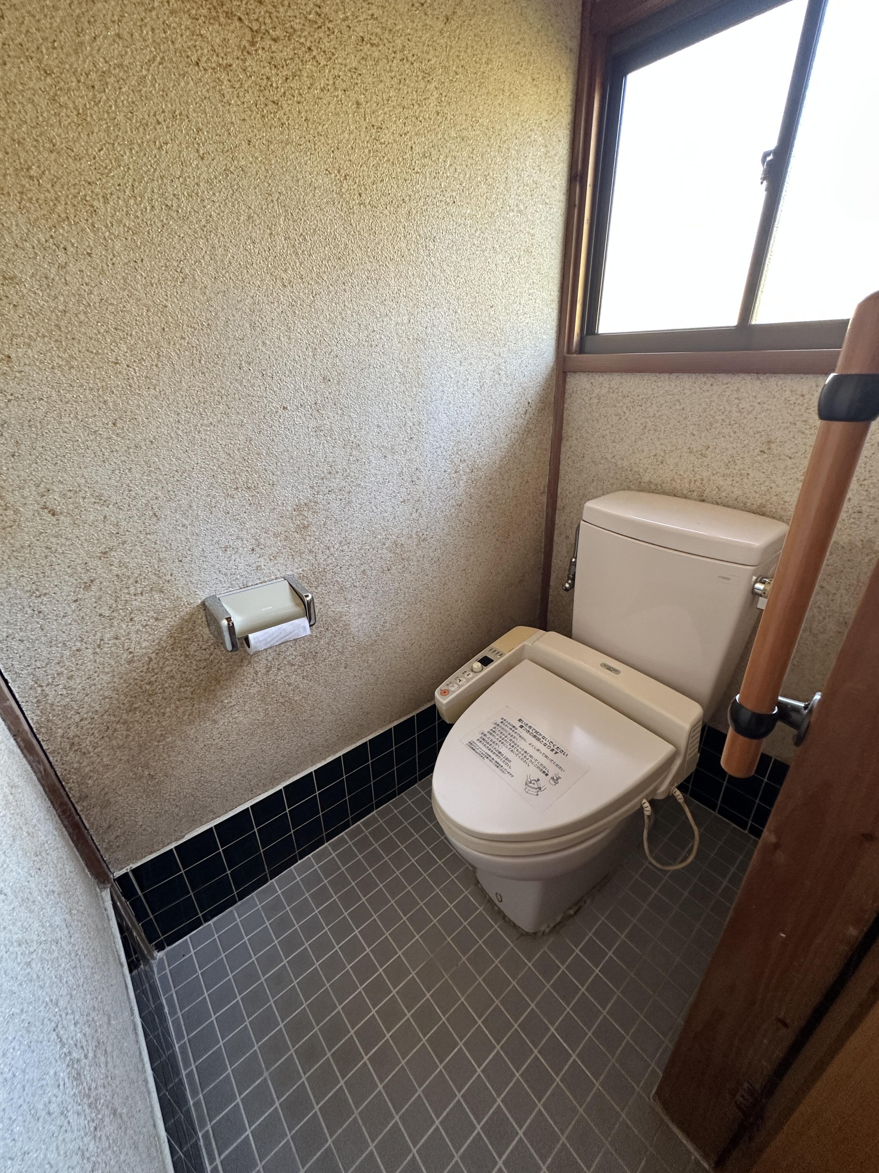 和風の壁やタイルの床。お掃除も大変なため、壁はクロス、床はクッションフロアへ改修しお掃除しやすいトイレ空間へ変身です。