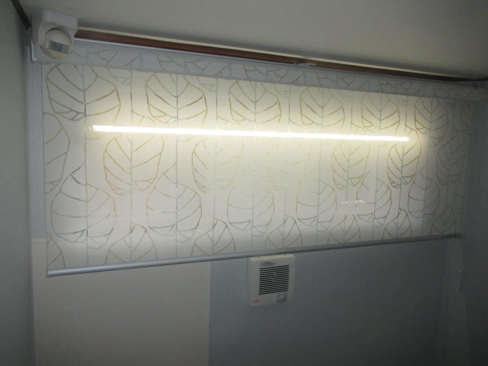 また、お客様のご要望で窓には透け感のあるロールカーテンを設置。これによって間接照明の光がきれいで、とても素敵な空間になりお客様も大変満足してみえました。