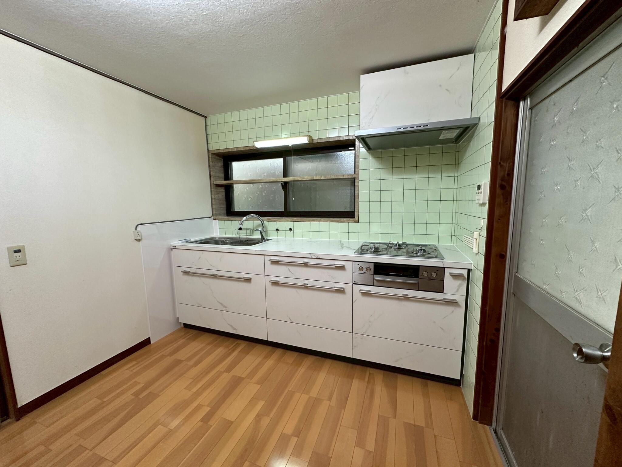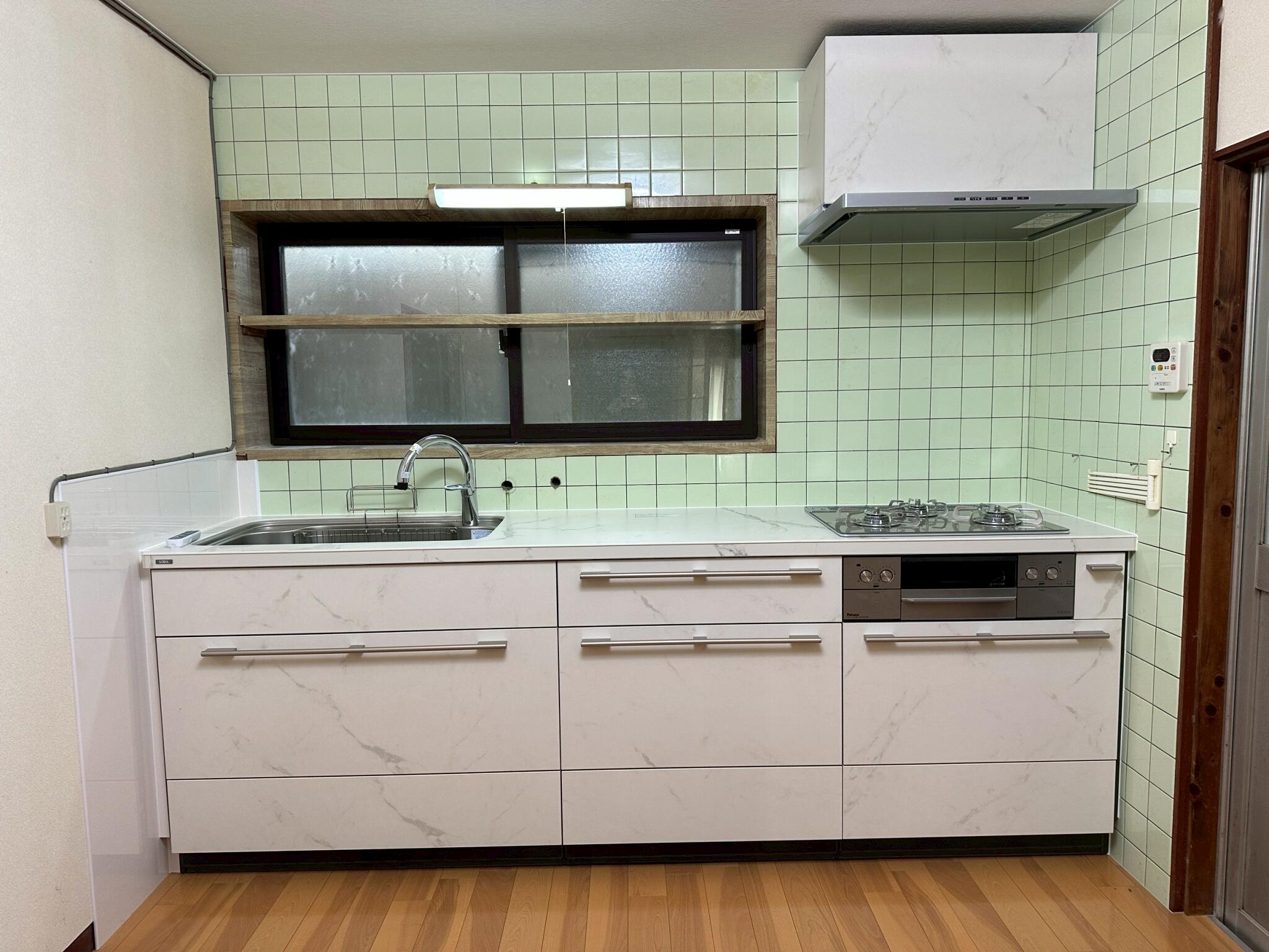 昔ながらのブロックキッチンから、システムキッチンに変わりました。 既存のタイル壁や窓は活かしつつ、キッチン本体が明るい色味になったことで空間全体がすっきりとした印象になりました。 使い勝手が向上し、毎日の料理が快適なるキッチンへと生まれ変わりました。