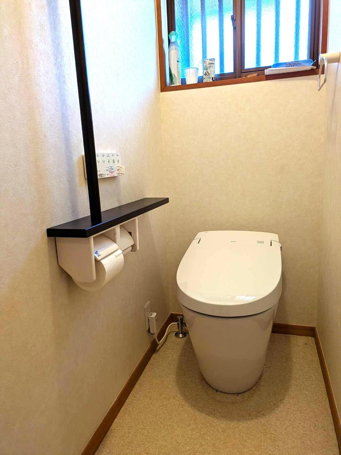 元のトイレはタンクが大きかったですがタンクレスになったのですっきりとした空間になりましたね♪