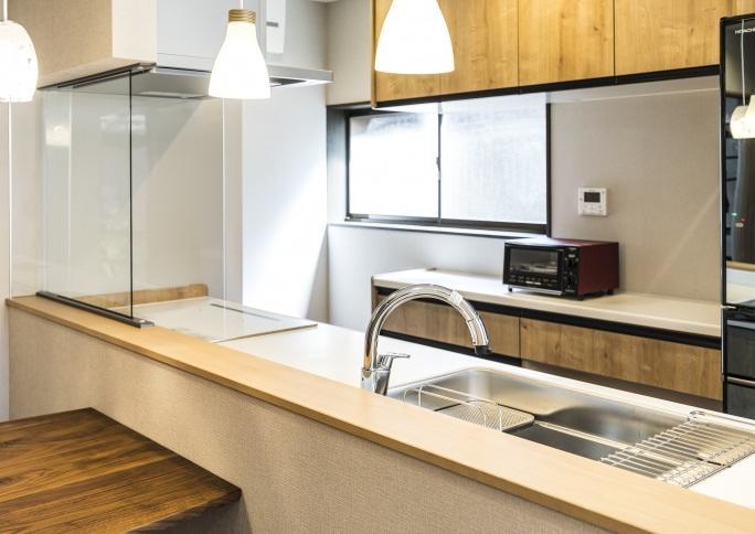 完全同居のスタイルを選ばれたT様。ご家族が集まるLDKはリフォームプランナーからのご提案で、仕切り壁を取り払って隣のホールを取り込み、広々とした開放的な空間に。飛騨古川で購入された無垢のダイニングテーブルセットが美しく映えるペンダントライトにもこだわりました。LDKには2間続きの和室が隣接。引き戸でゆるやかにつながり、対面式オープンキッチンで料理をしながら、お子さんたちが元気に遊ぶ姿を見守ることができるのもポイントです。