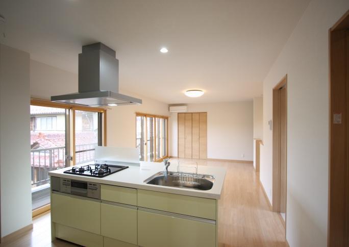 離れの2Fをフルリノベーションしました。お風呂だけは母屋でということで、それ以外の生活を離れでしたいというご要望でした。鉄骨を骨組みだけにしてから取り掛かる、大掛かりなリノベーション工事です。既存の窓に合わせてプランニングをし、コストを抑えました。和室2部屋と納戸を、17.3帖のLDKと主寝室にし、洗面室、ウォークインクローゼット、パソコンコーナーを新たに作りました。高級感のある1LDKが出来上がりました。