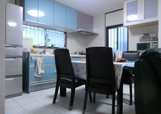 キッチンはまだ新しいのもあり、既存のままに。その代わりにダイニングキッチンの床をタイルで貼って、モダンな雰囲気を出しました。