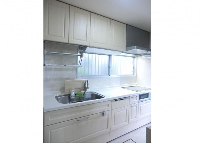白で統一して明るくて使い勝手のいいキッチンに生まれ変わりました。