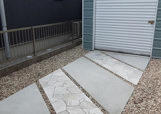 ・倉庫のアプローチ土間に乱切り石貼り