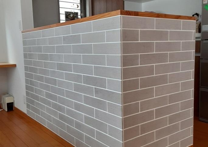 ・対面キッチンのカウンター下にサブウェイタイル