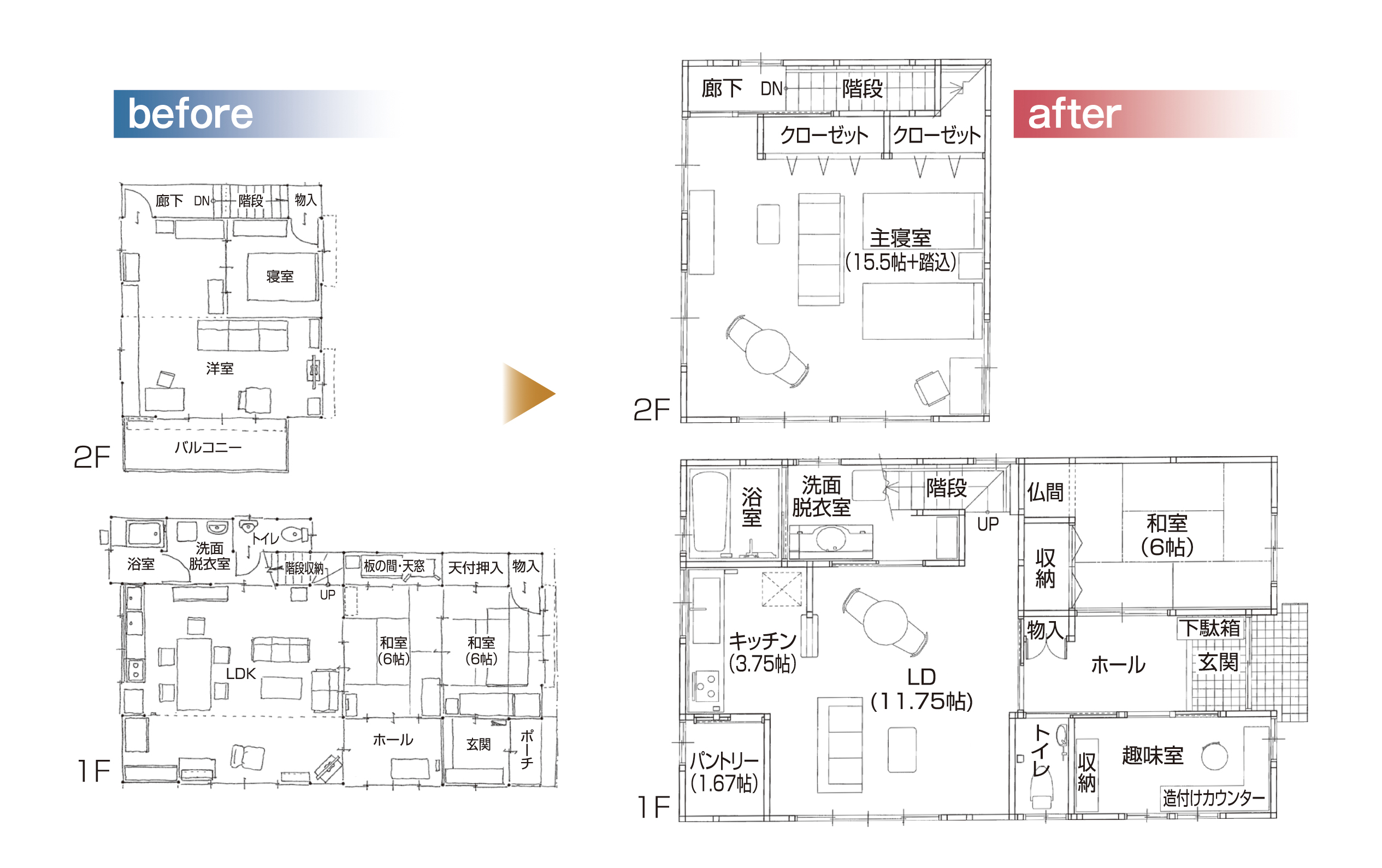 家族の変化に合わせ部屋数を減らし、急階段は段を増やして緩やかに