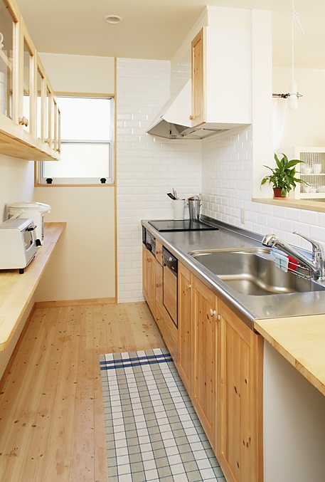 キッチンとしては限られたスペースだったのですが、収納棚のサイズを一般的なものより小さくするなどして、コンパクトにまとめています。『作業しながら、何にでも手が届いて使いやすいです』と奥様。