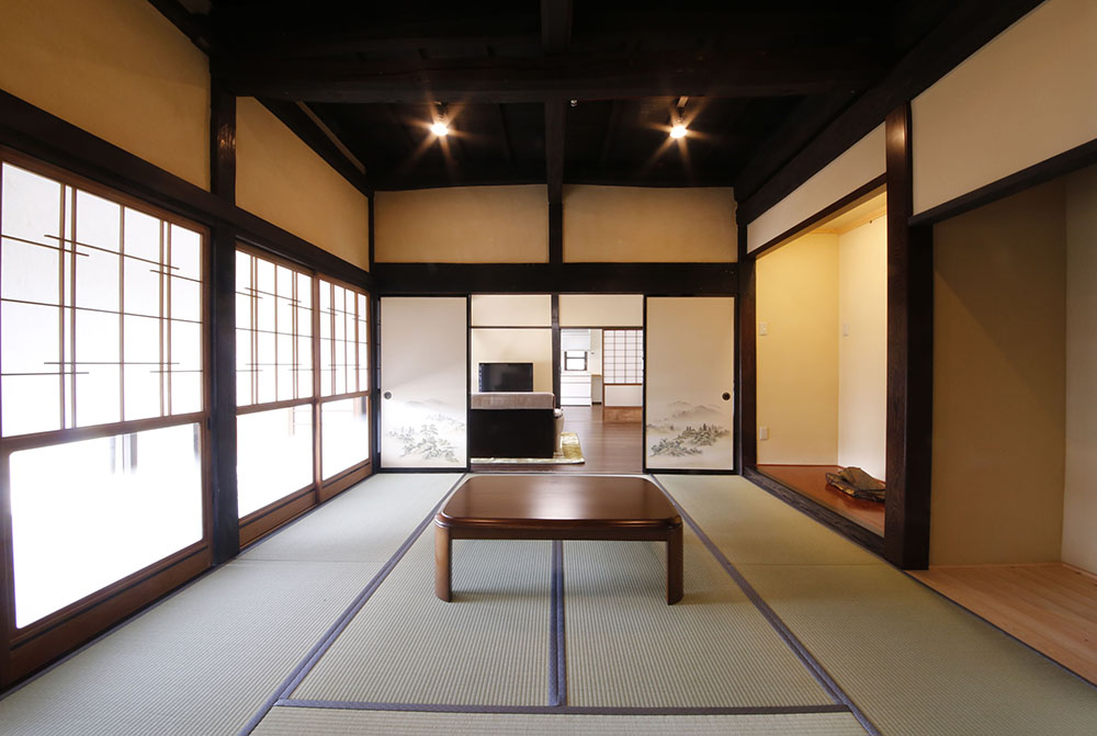 古民家の雰囲気をそのままに、旅館に暮らすような落ち着きのある空間を作りました。