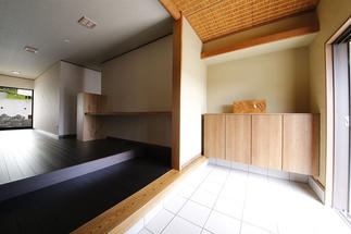 土間を設けて、お客様ごいらっしゃった時に、靴を脱いで上がらずとも気軽にもてなせる空間を作りました。