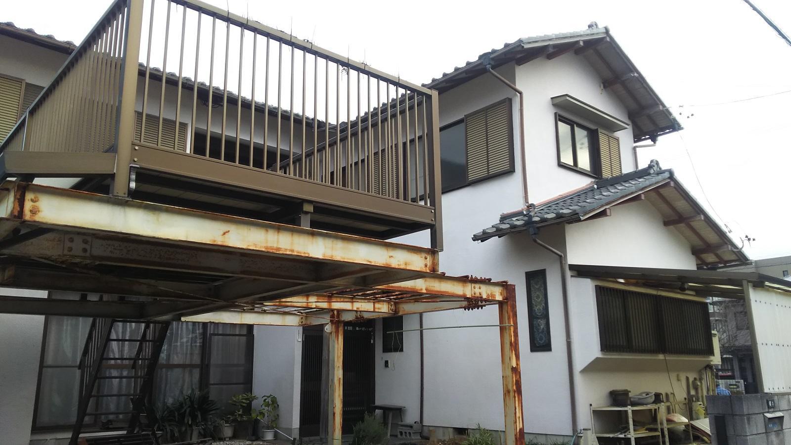 大幅変更とそれに伴う外部開口部(窓)の変更、建物全体の耐震補強、玄関扉の交換、ベランダを大きくする、老朽化したバルコニーの撤去と、それに変わるカーポート設置、ガスからオール電化(エコキュート電気温水器)への交換など、工事内容は多岐にわたります。
