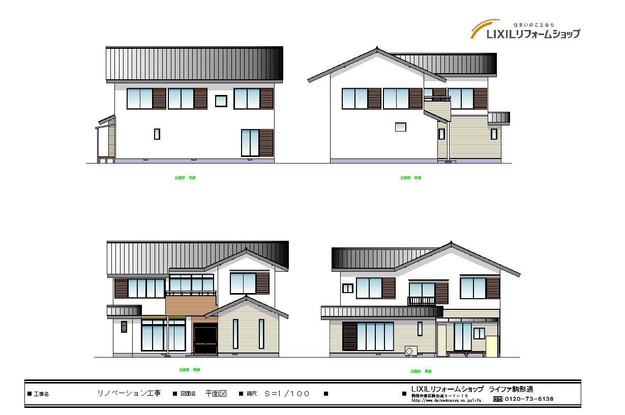 立面図です。外部開口(窓)やベランダの変更確認に使用しました。