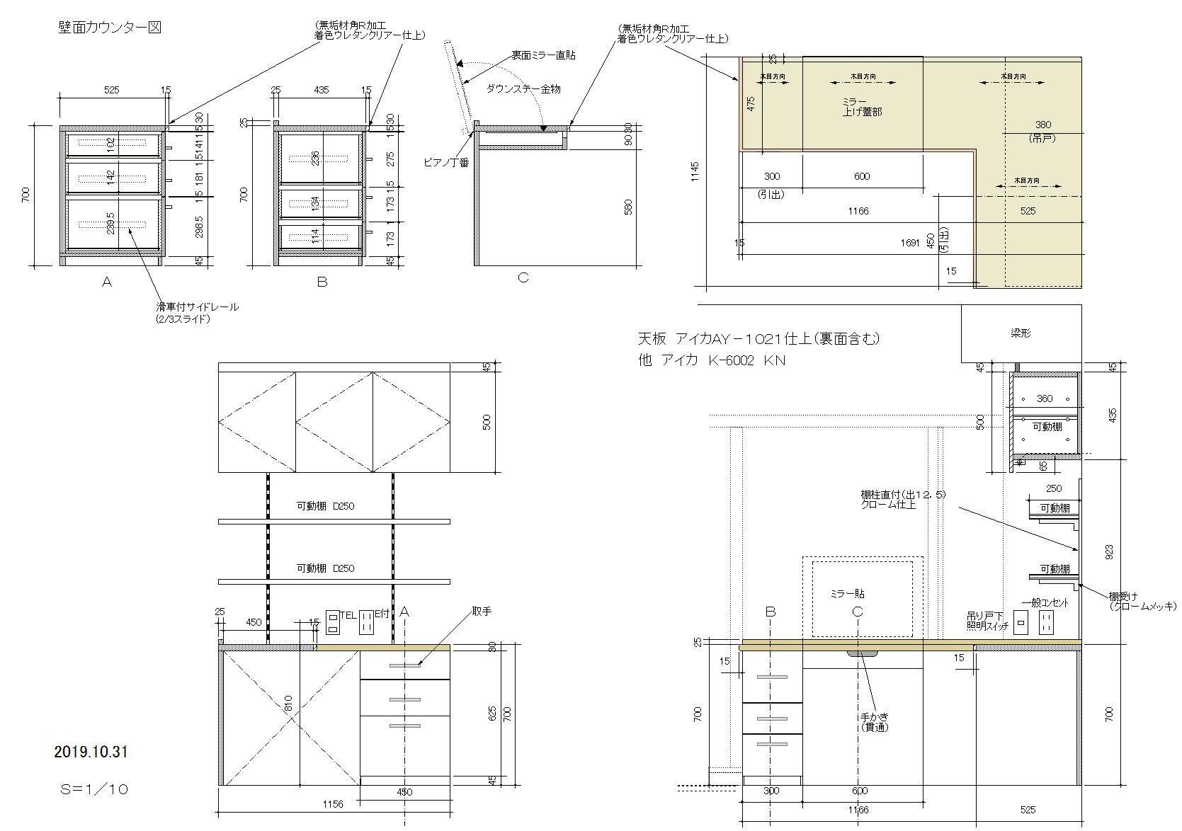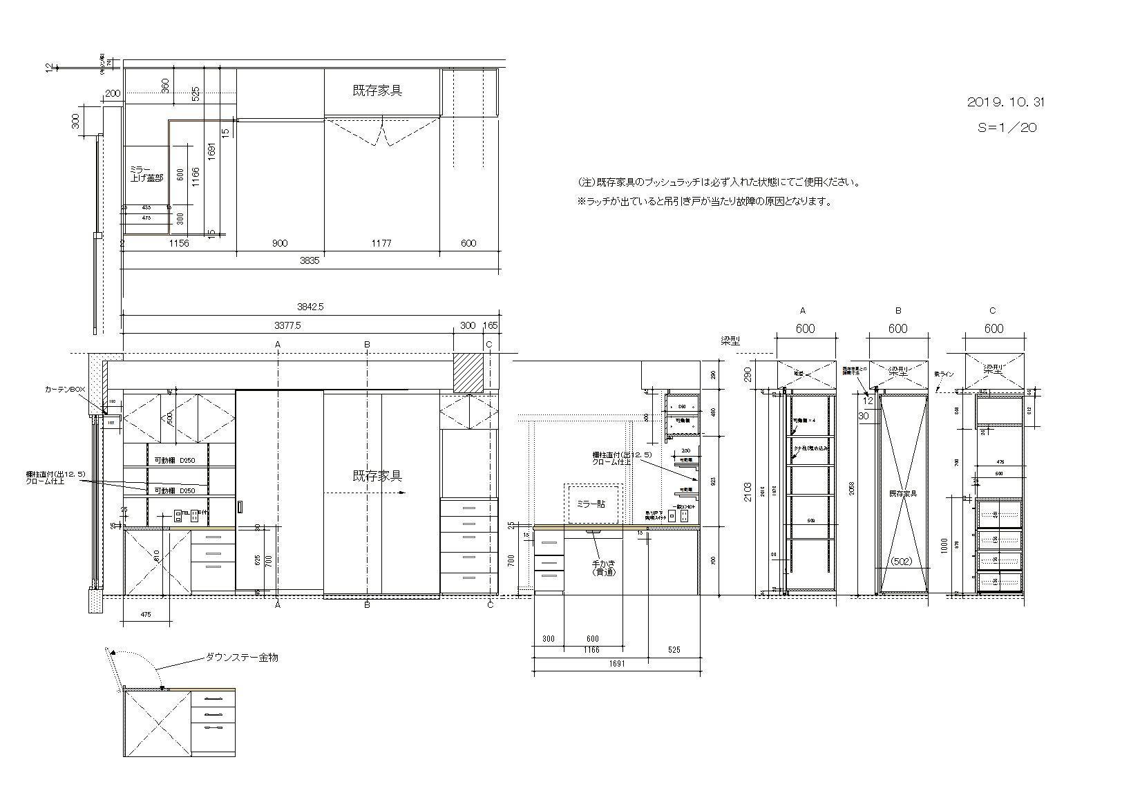 家具詳細図です。引き出しの深さまで打ち合わせしました。