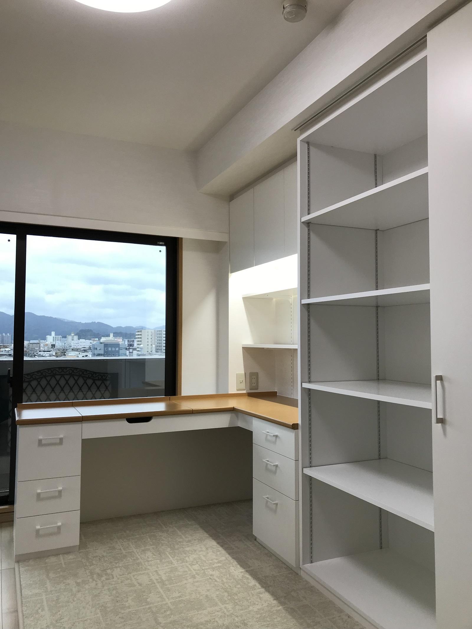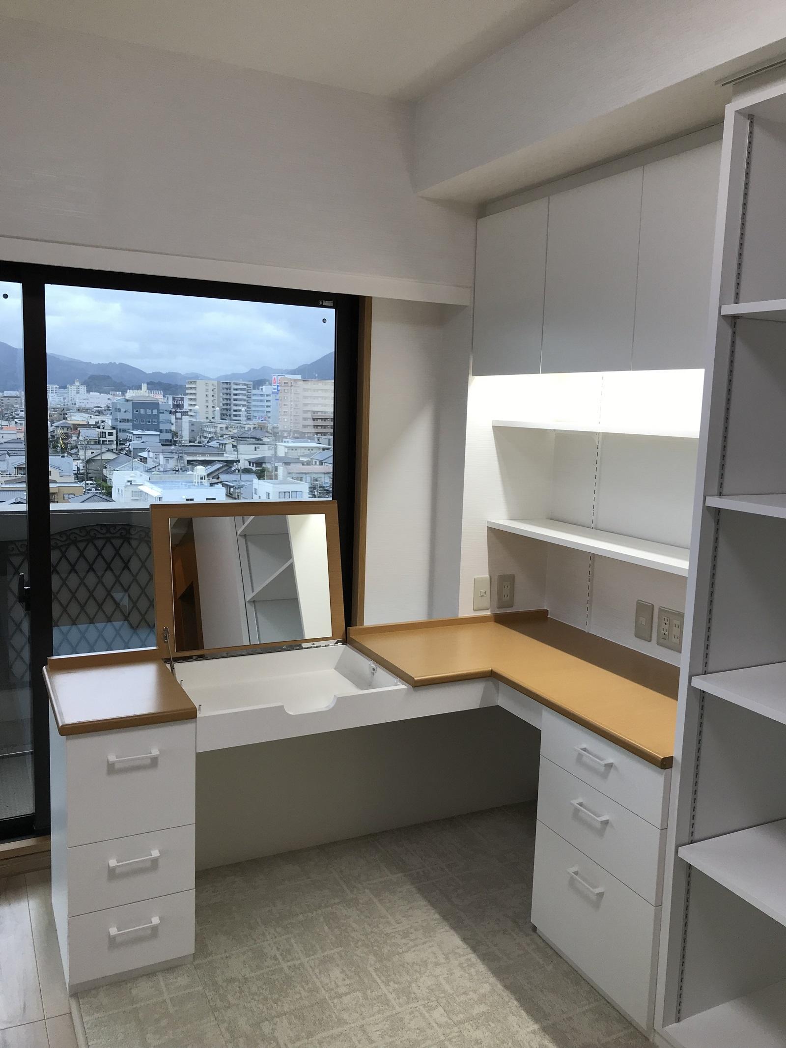 私どもは部屋全体をリフォームしますのでその中で部屋の寸法にぴったりの壁、オリジナル家具を製作できます。