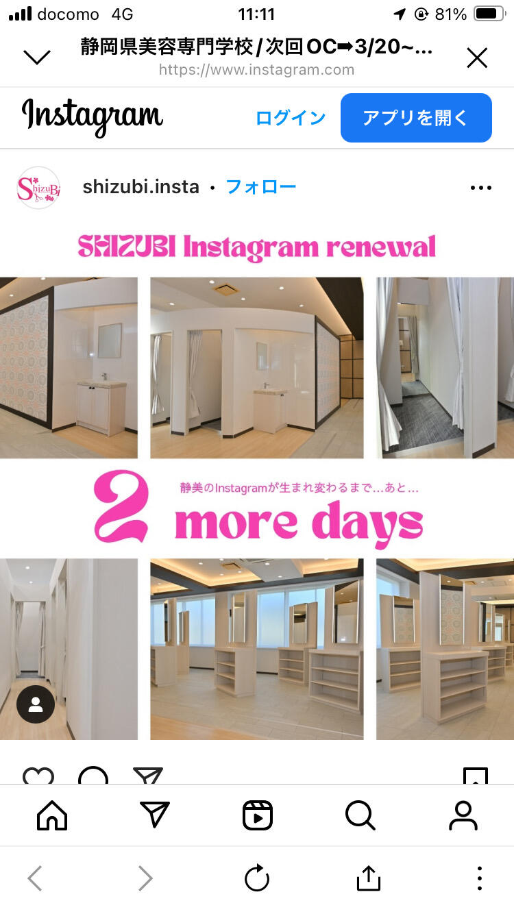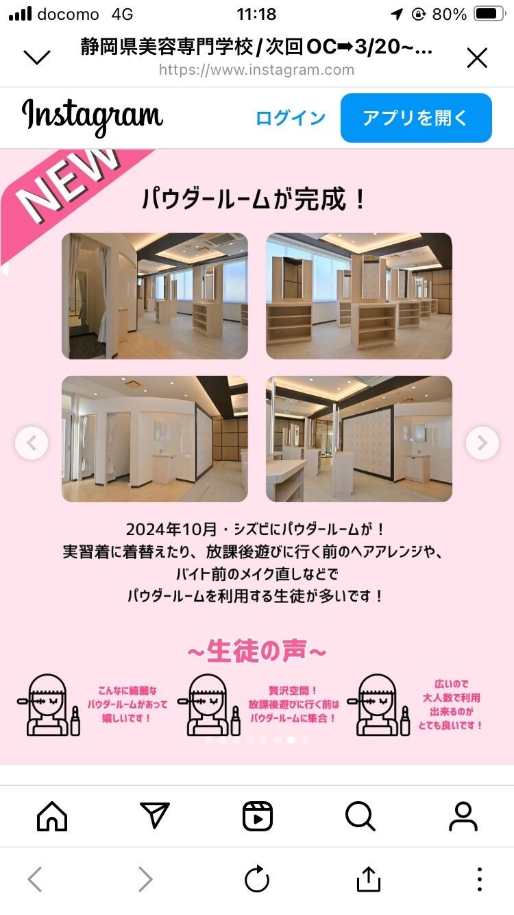 去年工事をさせていただいた静岡美容専門学校様のパウダールームを学校のインスタグラムに載せていただきました。