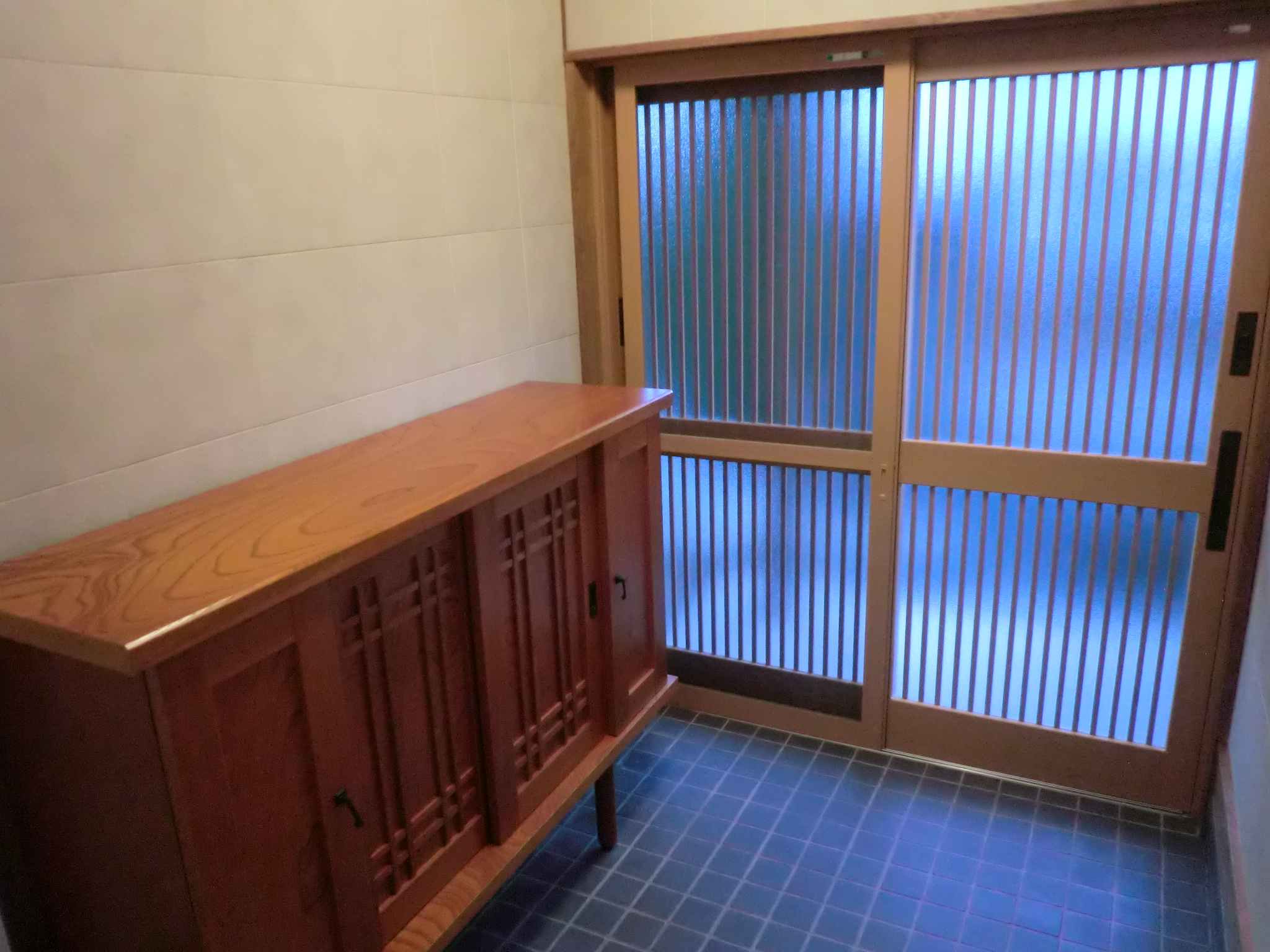 床のタイルはそのままで昔の雰囲気を残しつつ、壁には和調のエコカラットを前面に貼りました。