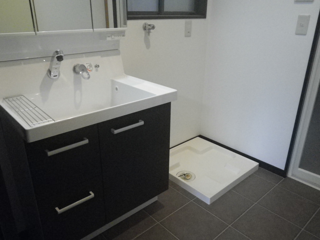 フローリングとタイル、床材を分けたお洒落な水廻りリフォームです。