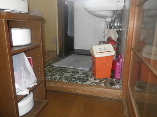 施工前 洗面所の段差施工後はこの段差がなくなりました!!