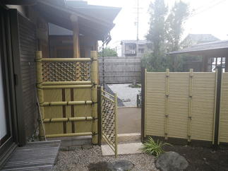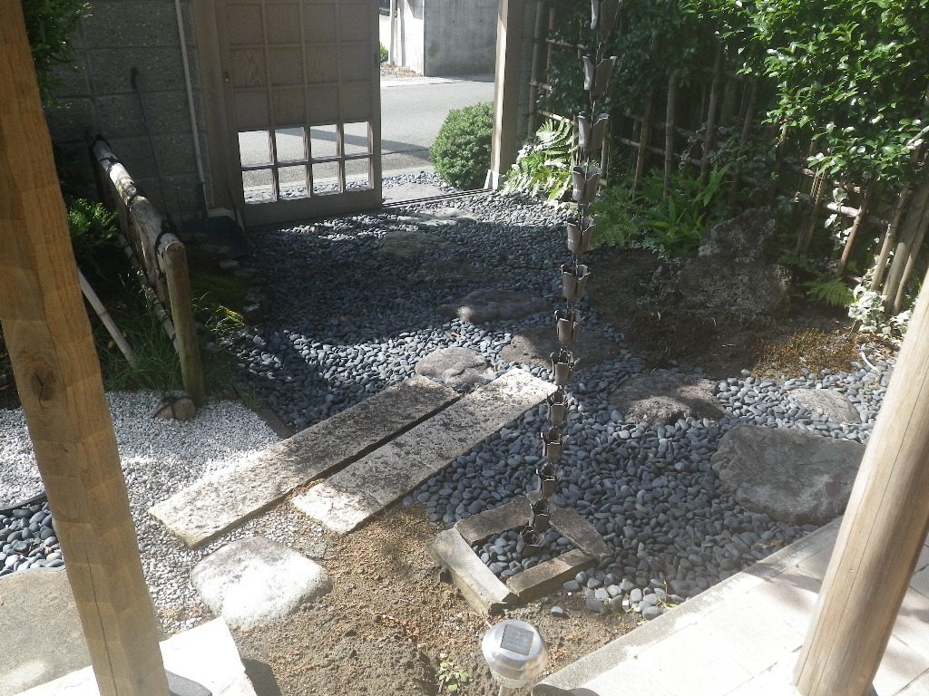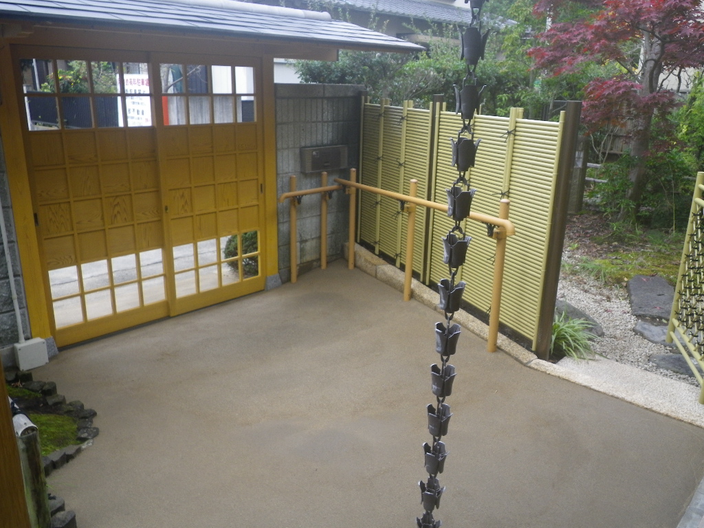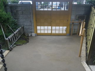静岡市内でエクステリアのリフォームです。元々は飛び石が置かれたアプローチでしたが、夕方足元が見えずらい時に施主様の足が石に引っ掛かり転んでしまったことがリフォームのきっかけでした。暗い時間や雨の日にも出入りの際危なくないよう飛び石を辞めて、水はけの良い"真砂土"を段差がなくなるようスロープに打ちました。スロープに沿って手摺りも付けました。