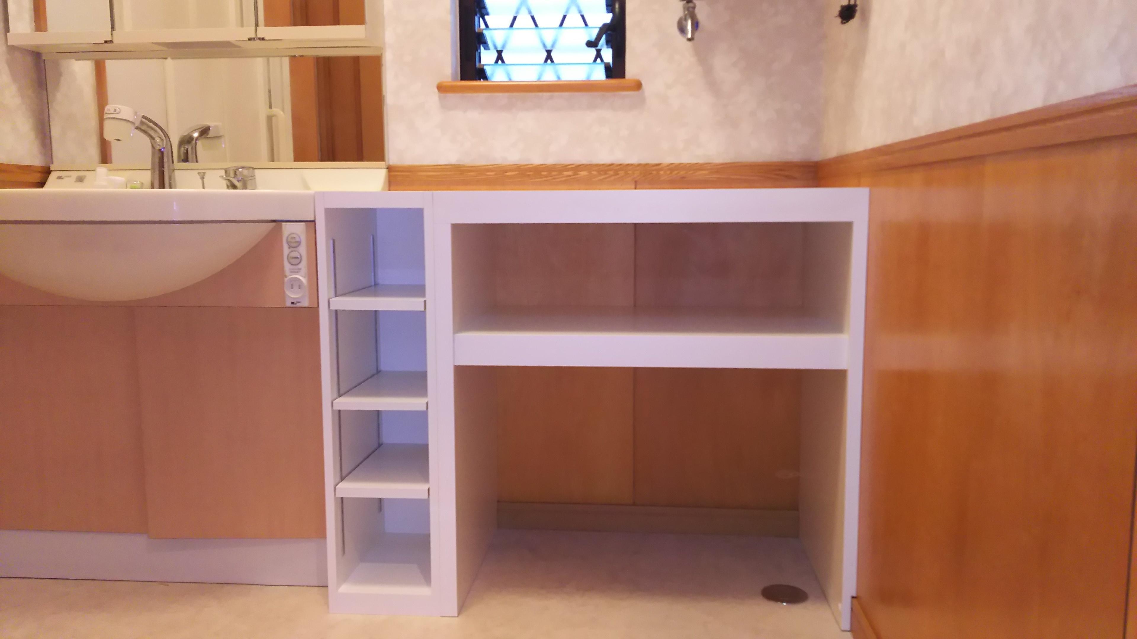 洗濯機を移設し、収納スペースにしました