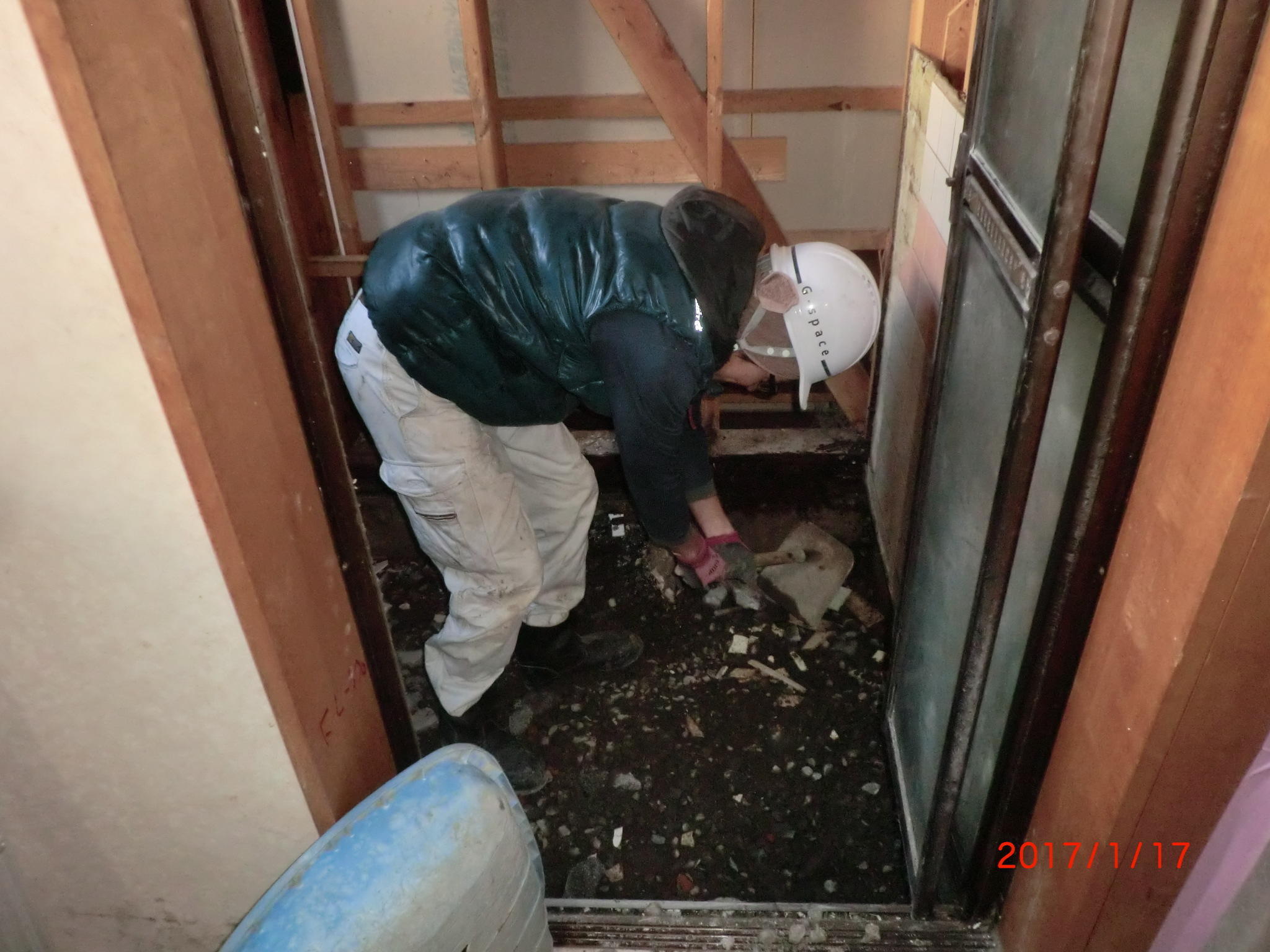 元々は洗面所から浴室までの出入りに12センチの段差があり、出入りの時は浴室のドアに掴まっていたということです。