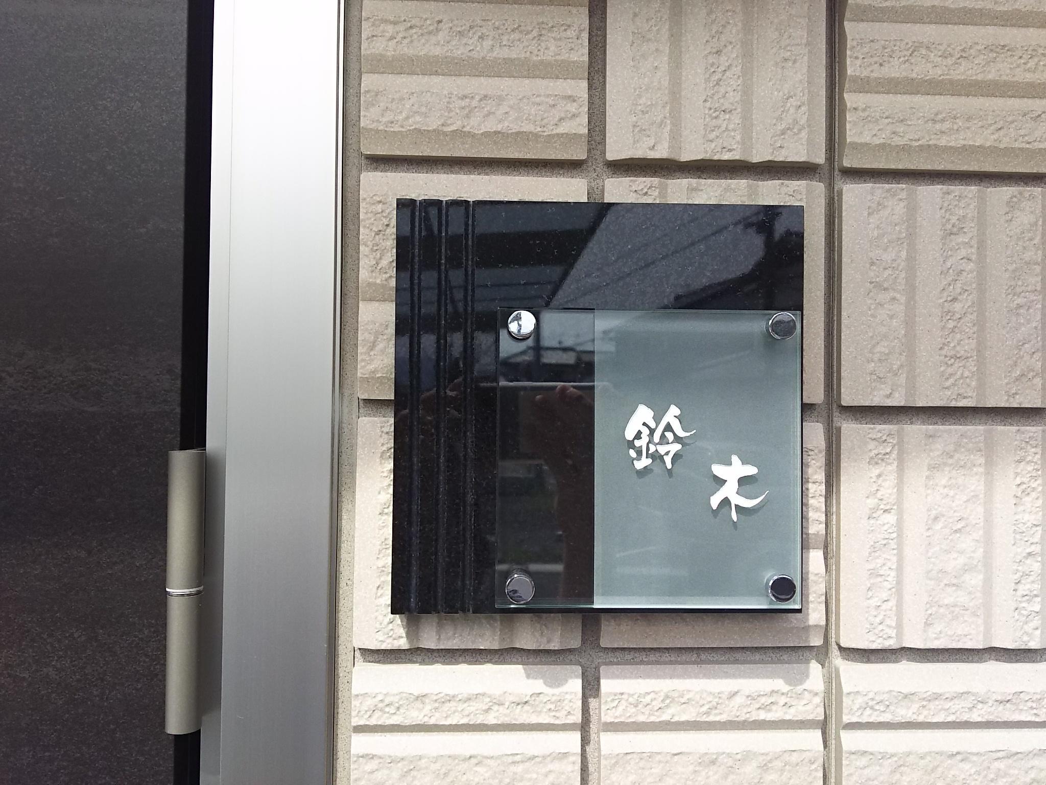 表札はLIXILの黒御影石タイプのものを選定しました。高級石材の黒御影石と、異素材のガラスを組み合わせることで重厚感はそのままにモダンなスタイルの表札に仕上がります。