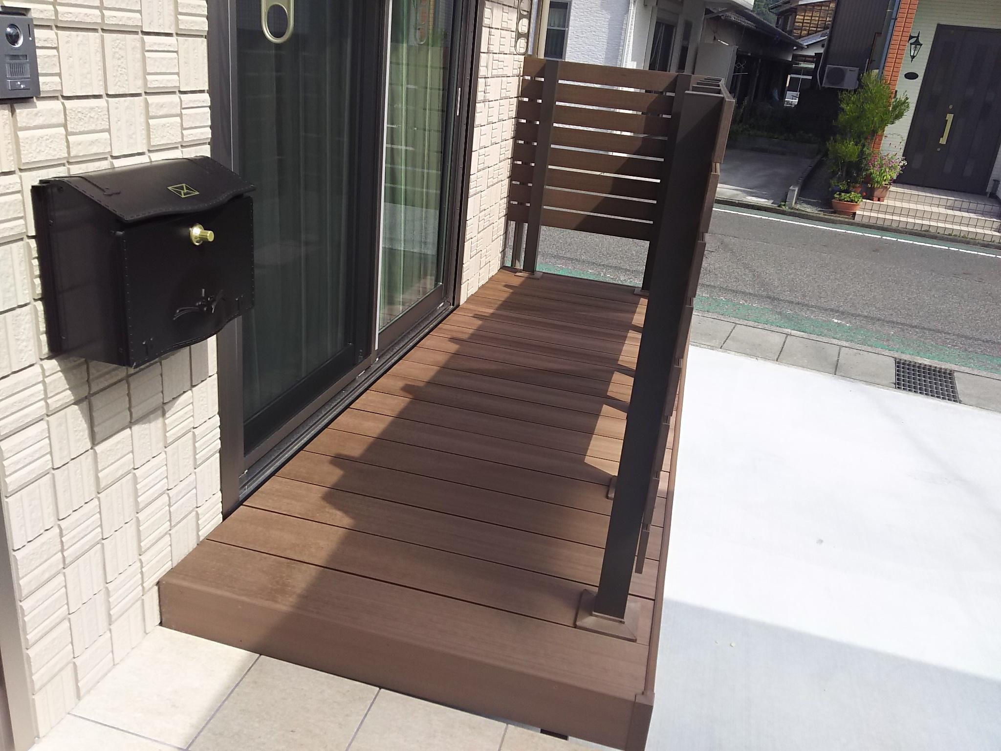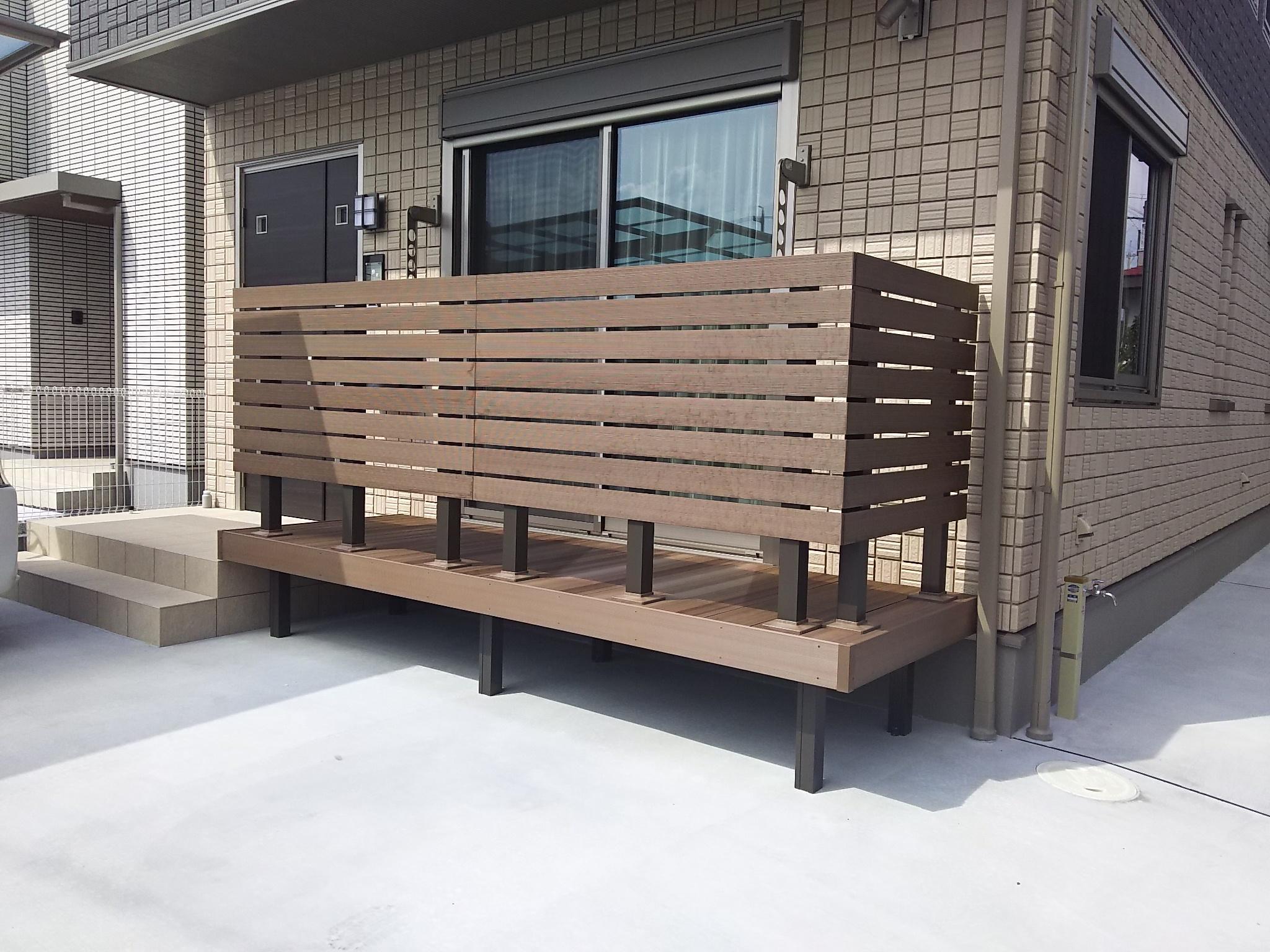 ウッドデッキはLIXILの樹ら楽ステージ 木彫を選定しました。樹ら楽ステージは、人工木材であるため湿気で腐ったりすることがなくシロアリによる食害の心配もありません。干割れやささくれもないので、お子さまにも安心です。樹ら楽ステージ 木彫は、木粉を多く配合しているため設置初期には天然木のような色調の変化がありますが、時間の経過とともにその変化度合は緩やかになります。目隠しのフェンスなどのコーディネートも出来るので、『自分だけのこだわりの空間』をつくることが出来ます。