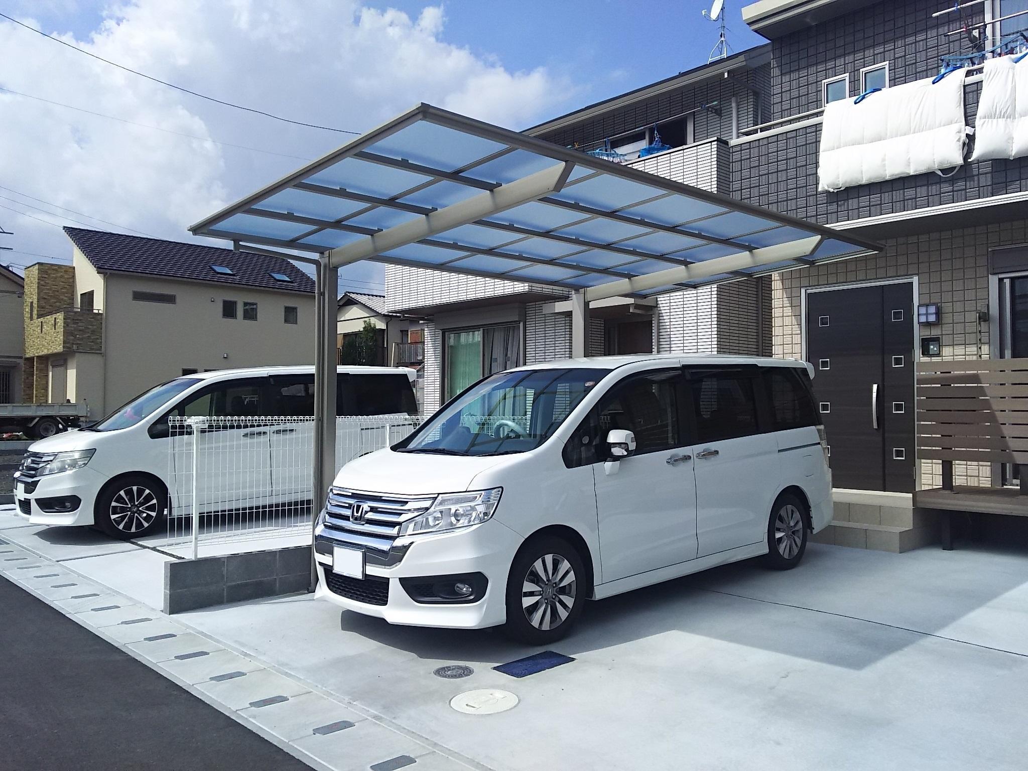 カーポートはLIXILのフーゴを選定しました。柱の高さは約2200㎜が標準ですが、S様邸ではロング柱(約2500㎜)のカーポートを設置しました。また、屋根は熱を効果的にカットする熱線吸収タイプの熱線吸収ポリカーボネート板のものにしました。そうすることで、真夏の日射しを浴び高温になるカーポート下のスペースや、車内温度の上昇も抑えることが出来ます。