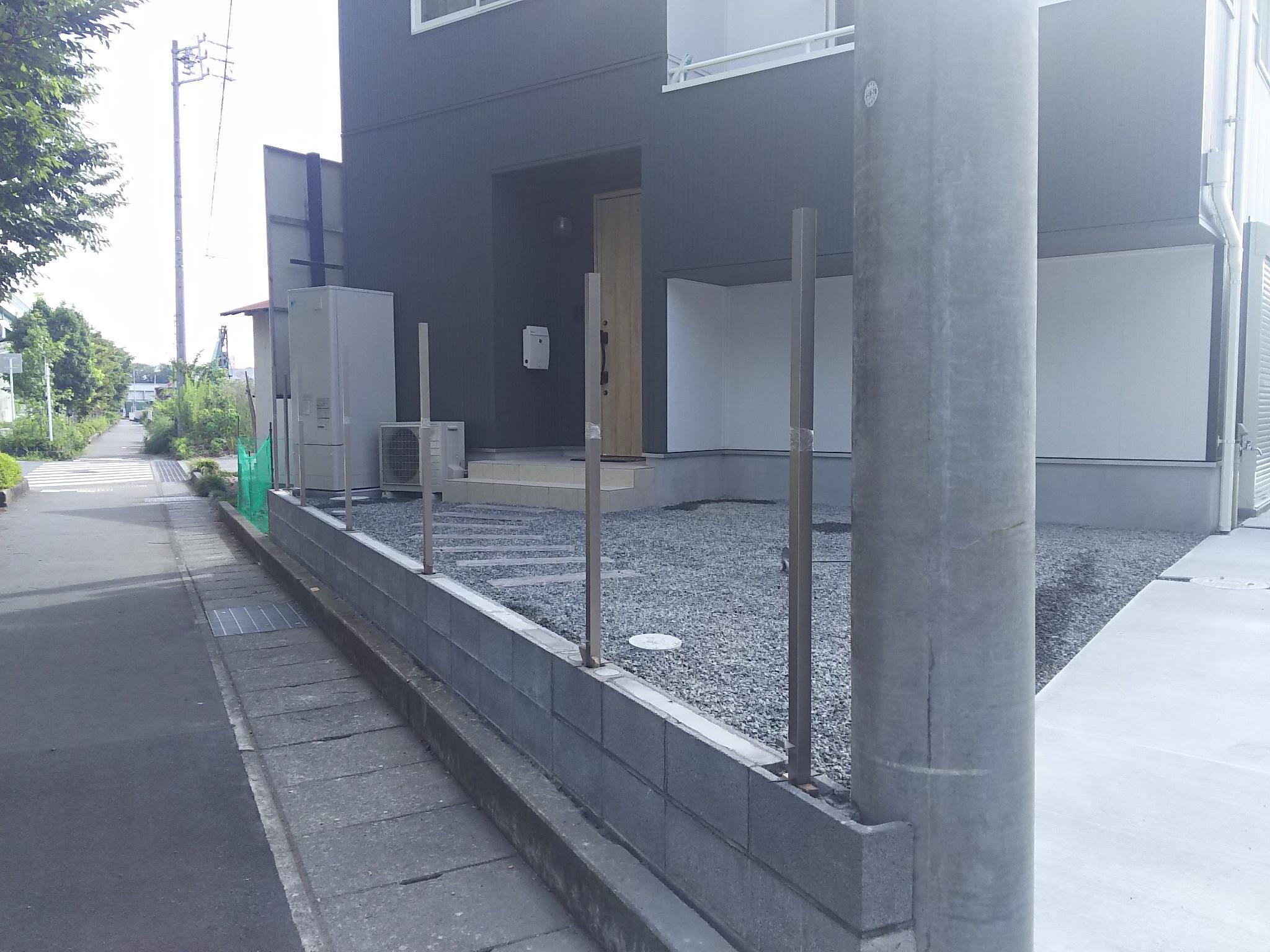 静岡市清水区のY様邸でフェンスの設置工事です。人通りがあるところには、目隠しのフェンスを設置して、隣地との境界にはメッシュフェンスを設置しました。