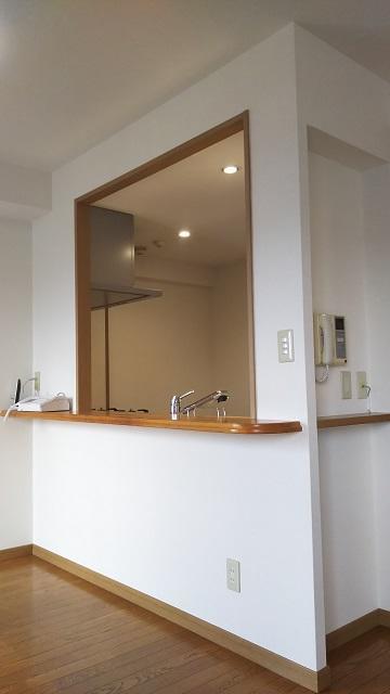 マンション入居に伴い、水廻りの交換リフォームをしていただきました。キッチンはシエラを選んでいただきました。また既存の物は吊り戸が付いており開口部からリビング側を見るとせっかくのみはらしのよい(高層階にお住まいですので)景色が見にくいため、吊り戸を取外し開口部を広くしました。見晴はもちろんのこと広さ感もかなりアップし、とてもよろこんでいただきました。