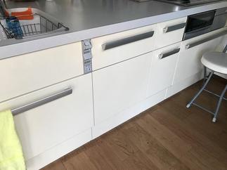水栓金具はタッチレス水栓で水栓廻りの汚れも軽減されます。深型食器洗い乾燥機付き、オシャレでお手入れしやすいレンジフードが付いています。背面側にも収納があり吊戸棚が無くても十分収納出来ます!