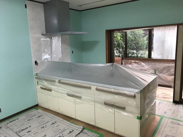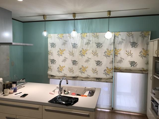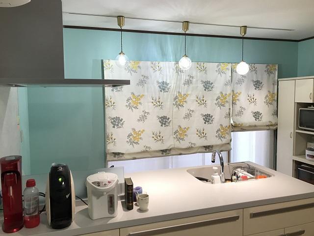 LED照明のシーリングライトとキッチン上にユニバーサルダウンライトが付き、奥様選定のペンダントライトがオシャレ感を演出しています♫