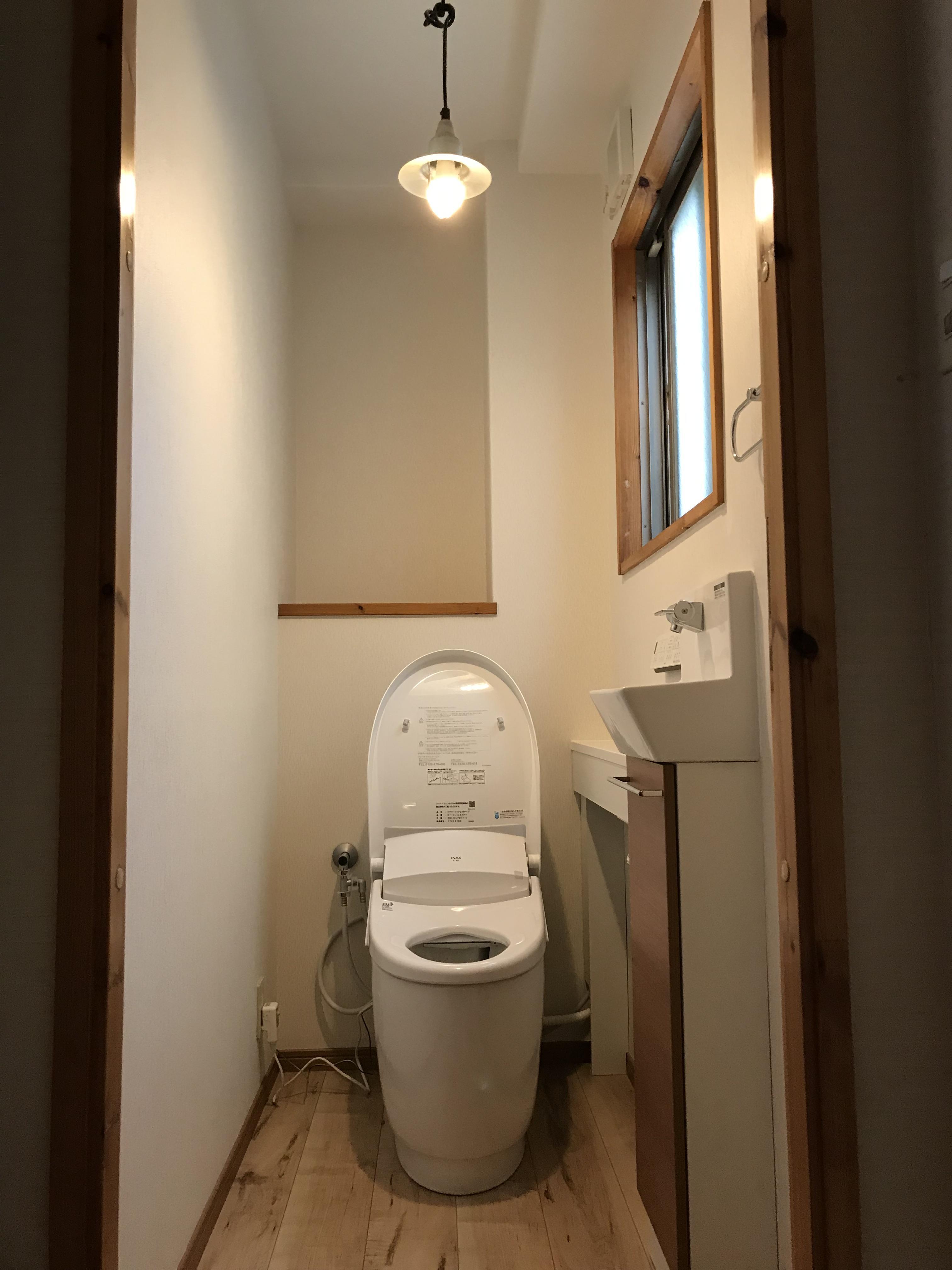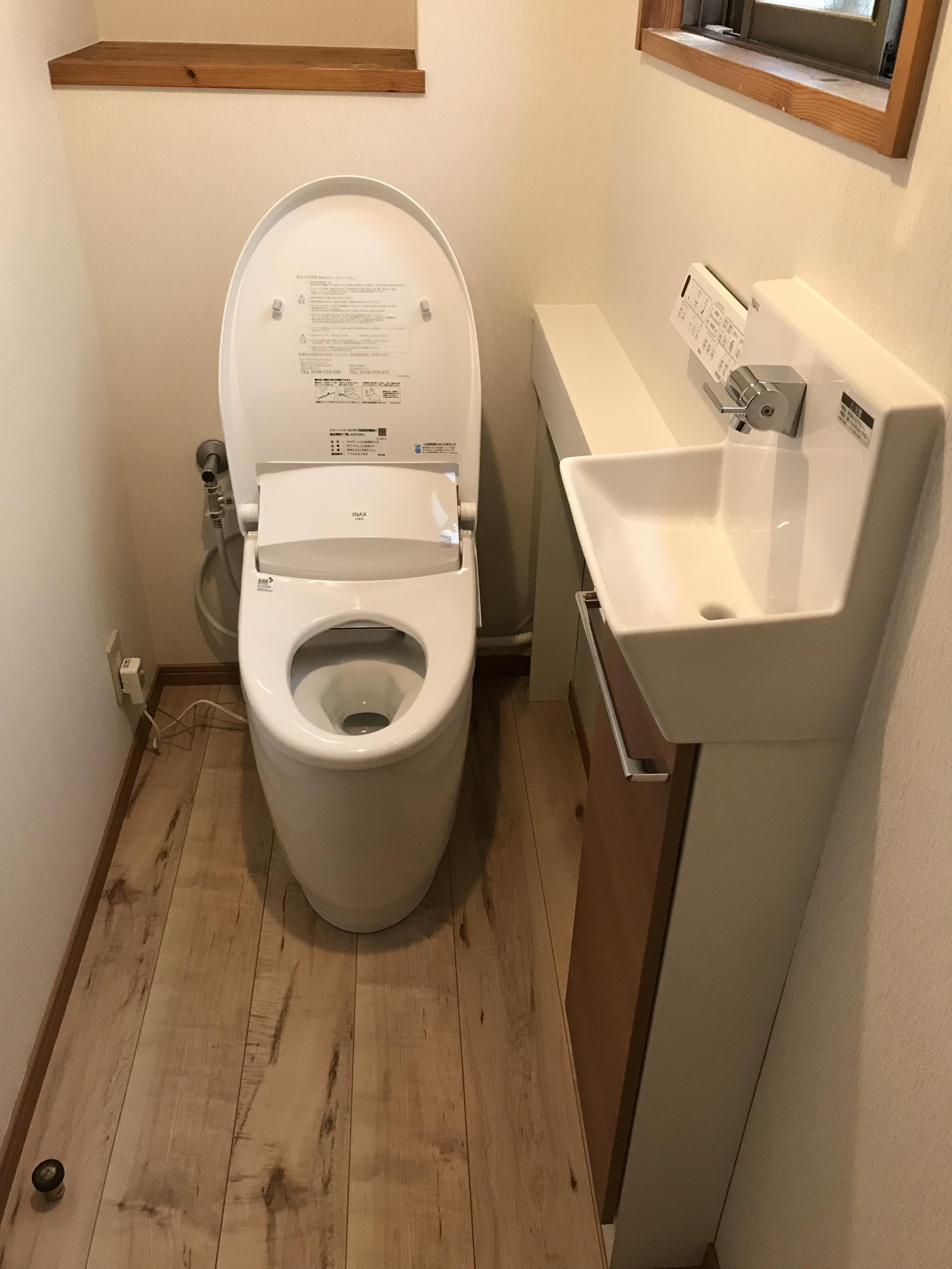 いままでのトイレが奥に手洗いがついたタイプでしたが、やはり別に手洗いが欲しいとの事でした。